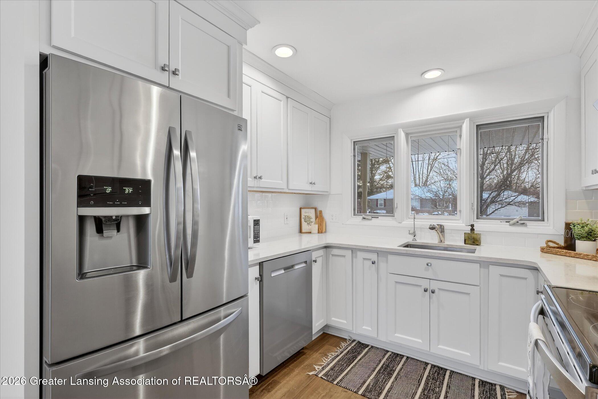 Welcome to 1005 S. Swegles Street, St. Johns -- a beautifully updated than a mile from restaurants, banking, and grocery store. Inside, you'll love the spacious open living and dining areas and the newer kitchen featuring Pioneer cabinetry, luxury plank flooring, Pella windows, and quartz countertops. An addition to the original home created a private owner's suite with a large walk-in closet and en-suite bath with skylight. The second bedroom is generously sized with space for a sitting area and direct access to the deck and backyard. A third bedroom, an additional full bath, and a convenient guest half bath complete the main level, along with abundant built-in storage.