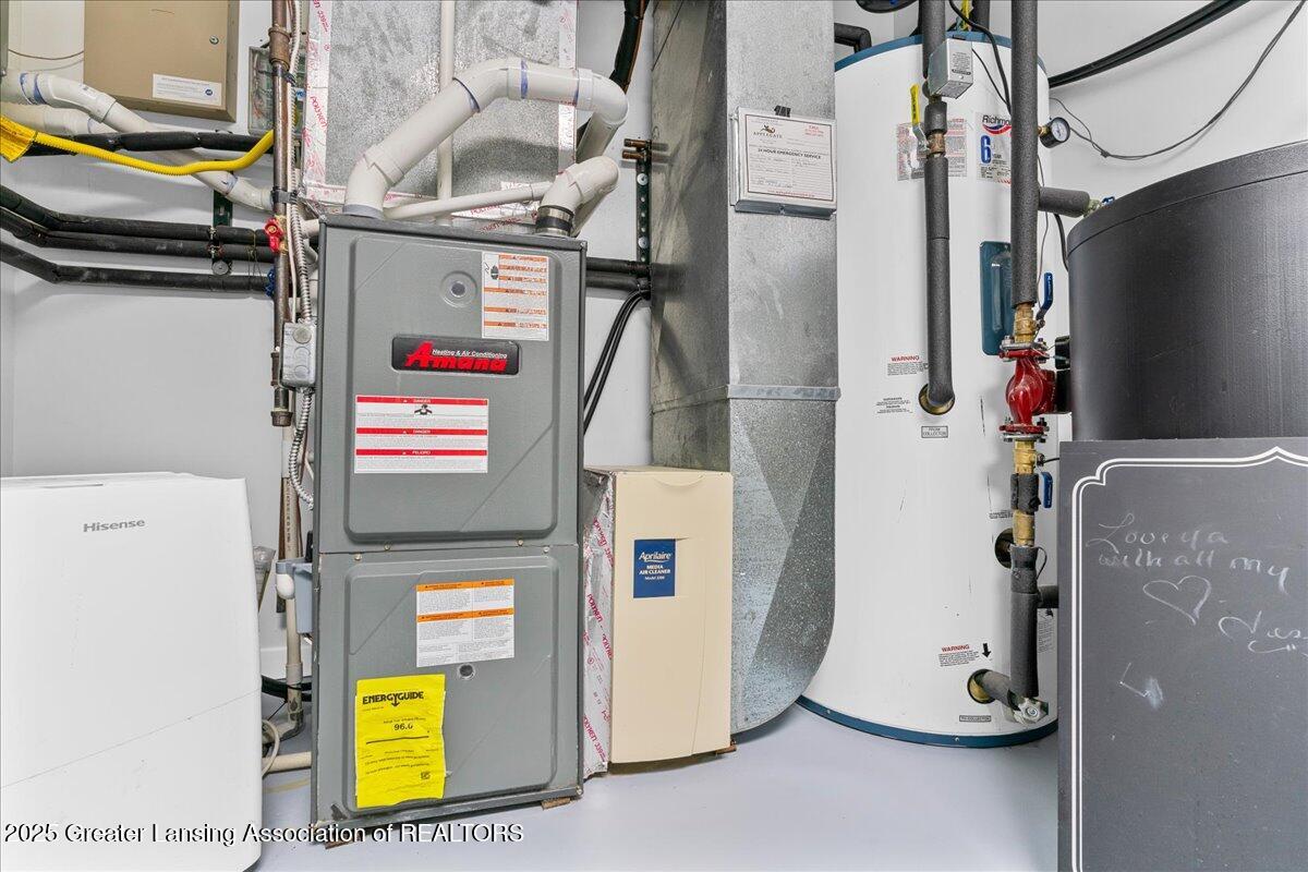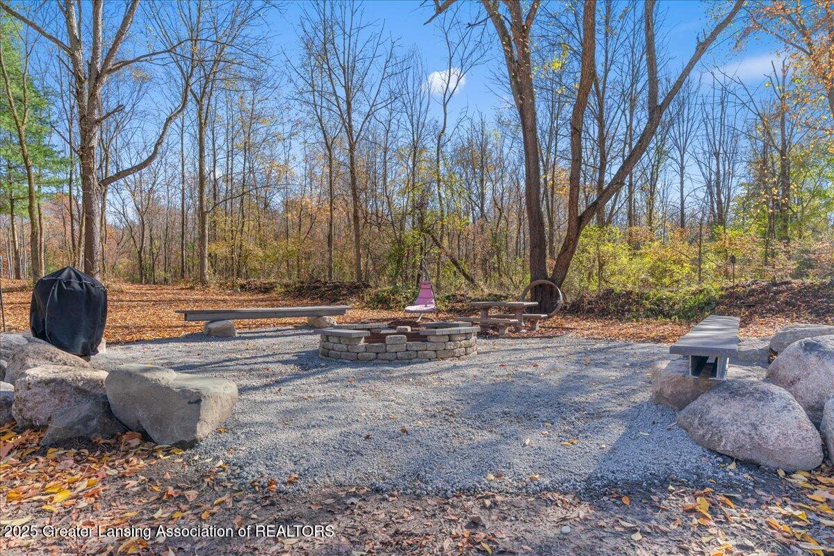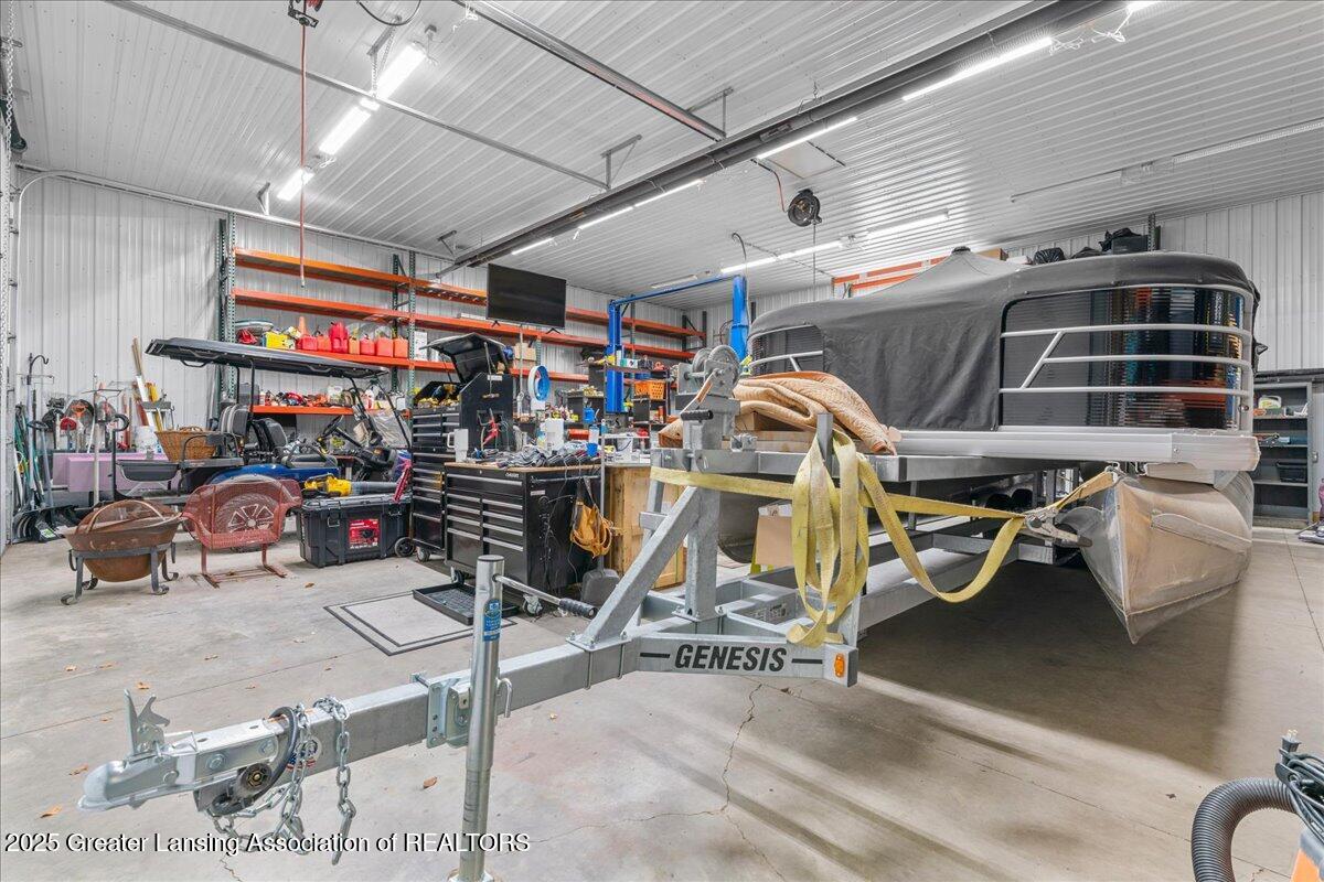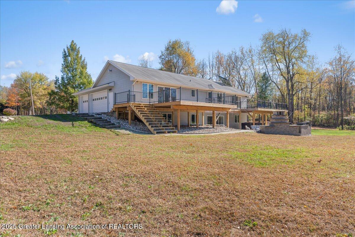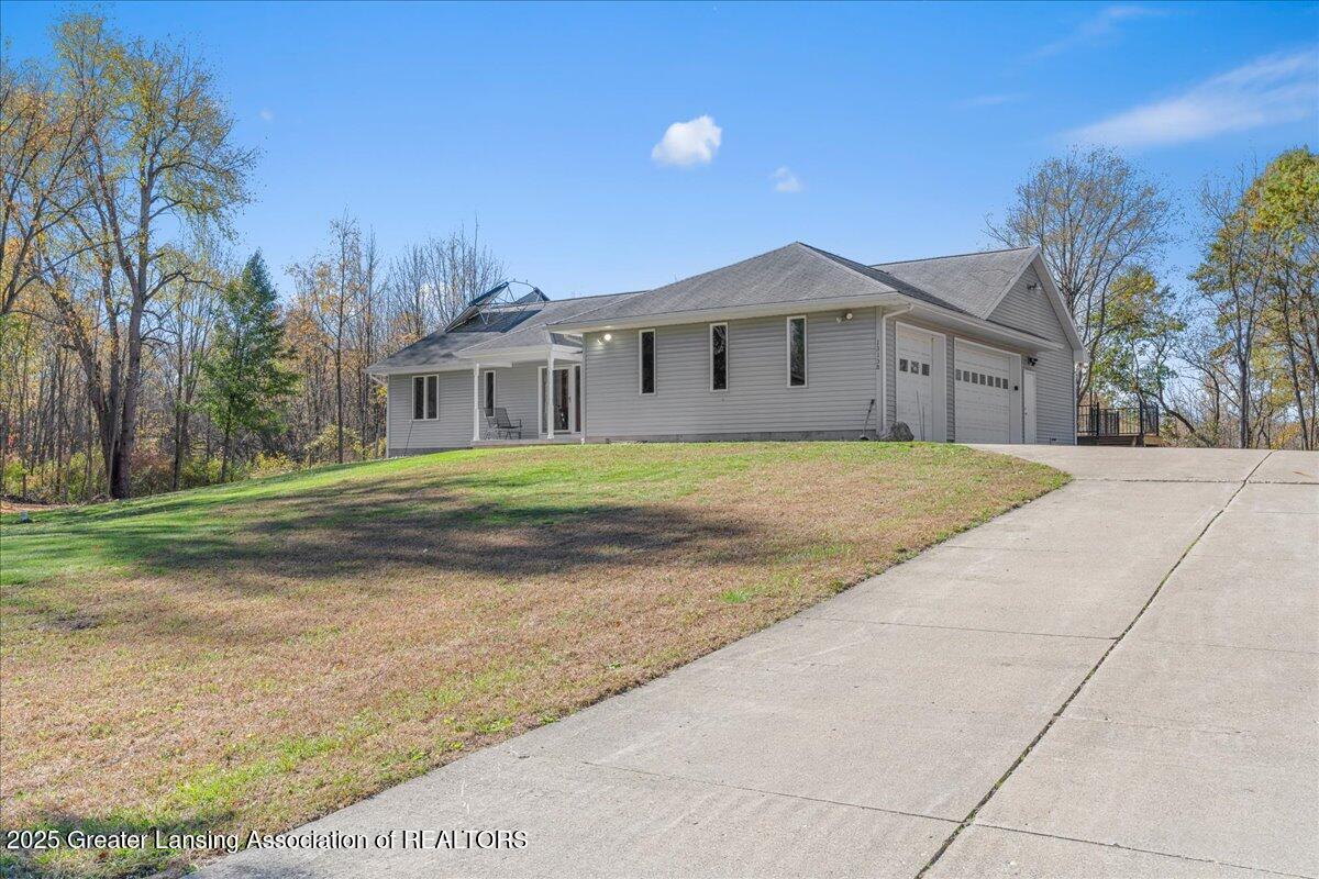 This beautiful, custom-built executive ranch sits atop nine secluded, wooded acres, offering exceptional privacy and natural beauty. The home features a spacious main-floor primary suite with an en-suite bath, large walk-in closets, a marble shower, and a relaxing whirlpool tub. An open floor plan with cathedral ceilings enhances the sense of space, while EnergyStar efficiency ensures comfort and performance throughout. The fully finished walkout lower level provides additional living space with a cozy rec room and fireplace, two generous bedrooms, and a full bath--perfect for guests or family. A true highlight is the impressive nearly 4,000 sq. ft. pole barn. Designed for versatility, it includes two separate heated spaces, two 14' access doors on one side, plumbed for bath/kitchen