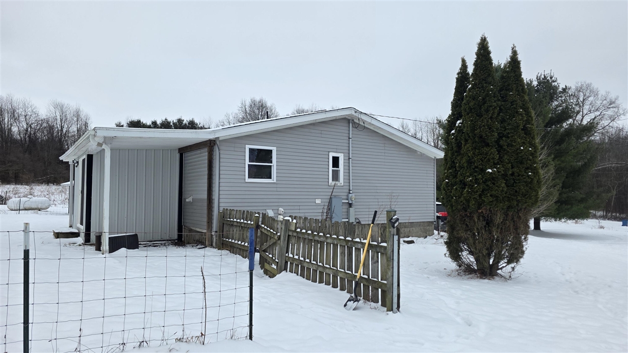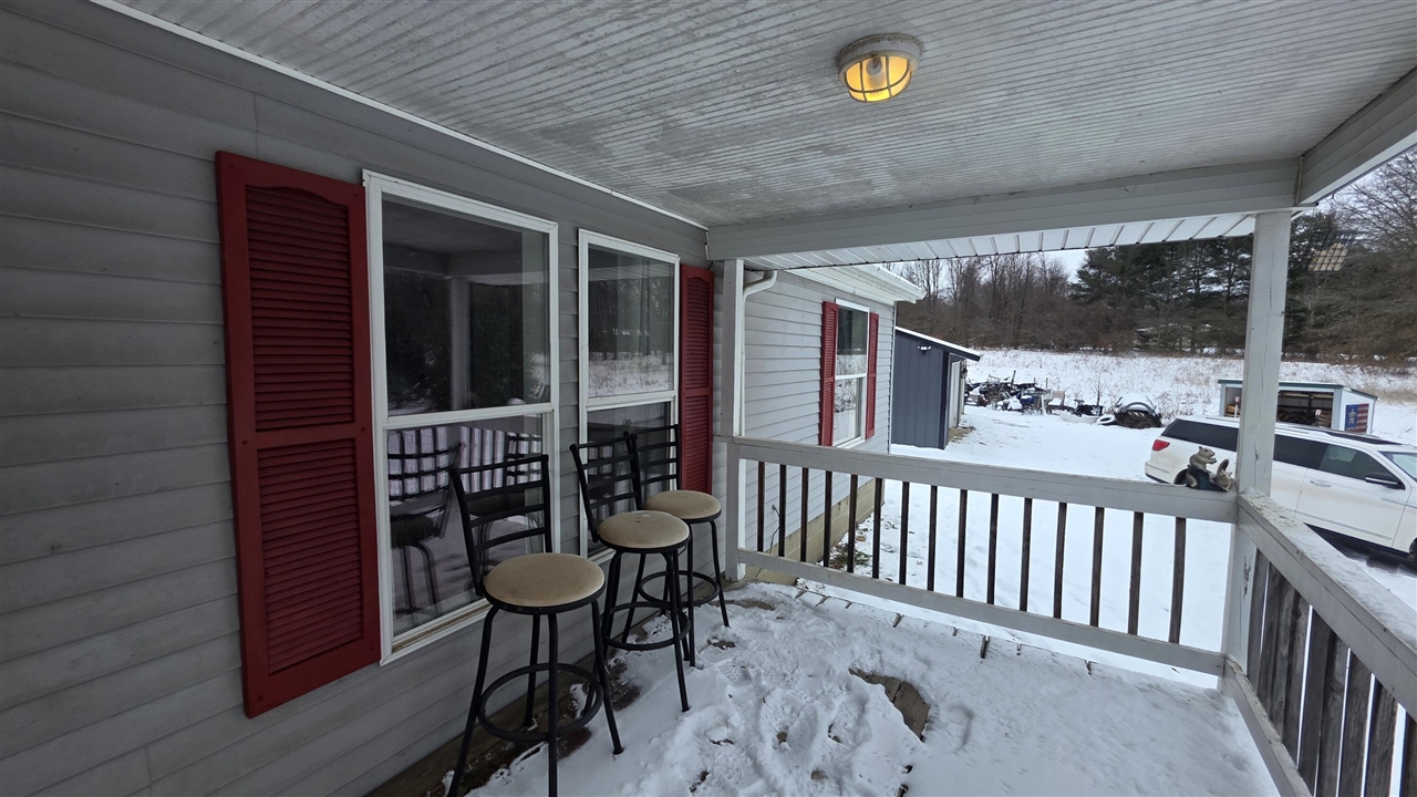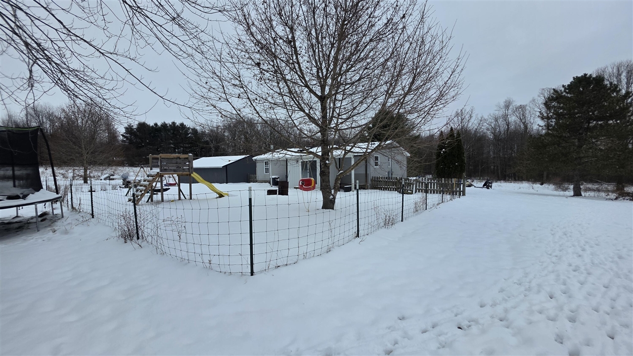This 3 BR, 2 full bath ranch is on almost 5 beautiful acres. Country living, just minutes from the highway. This lot is full of trees, paths, gardens, barns, play areas and more. Circle drive that allows tons of parking. The huge 3 car (36 x 26) garage/barn has door opener, wood burning stove, concrete floors, overhead storage, work bench and tons of storage. Woodshed near the big garage to store wood and keep it dry. Second barn is 25x20 and has a fenced area for pets (previous owners had horses in this barn). It has a chicken coup area and room for farm animals. Big back yard is fenced for pets and kids. Swing set stays, fire pit and gardens. There is a nice 12x9 4 seasons room at the back of the house that is great for relaxing or a nice bright home office. Once in the house, you will see a big open floor plan with vaulted ceilings. Kitchen is complete with all stainless-steel appliances. Nice big breakfast bar and eat in kitchen.
