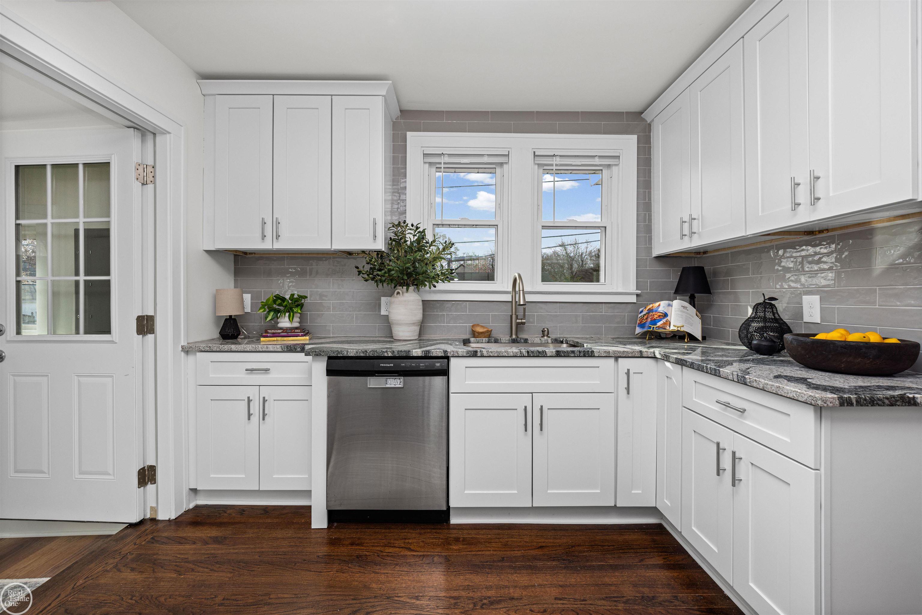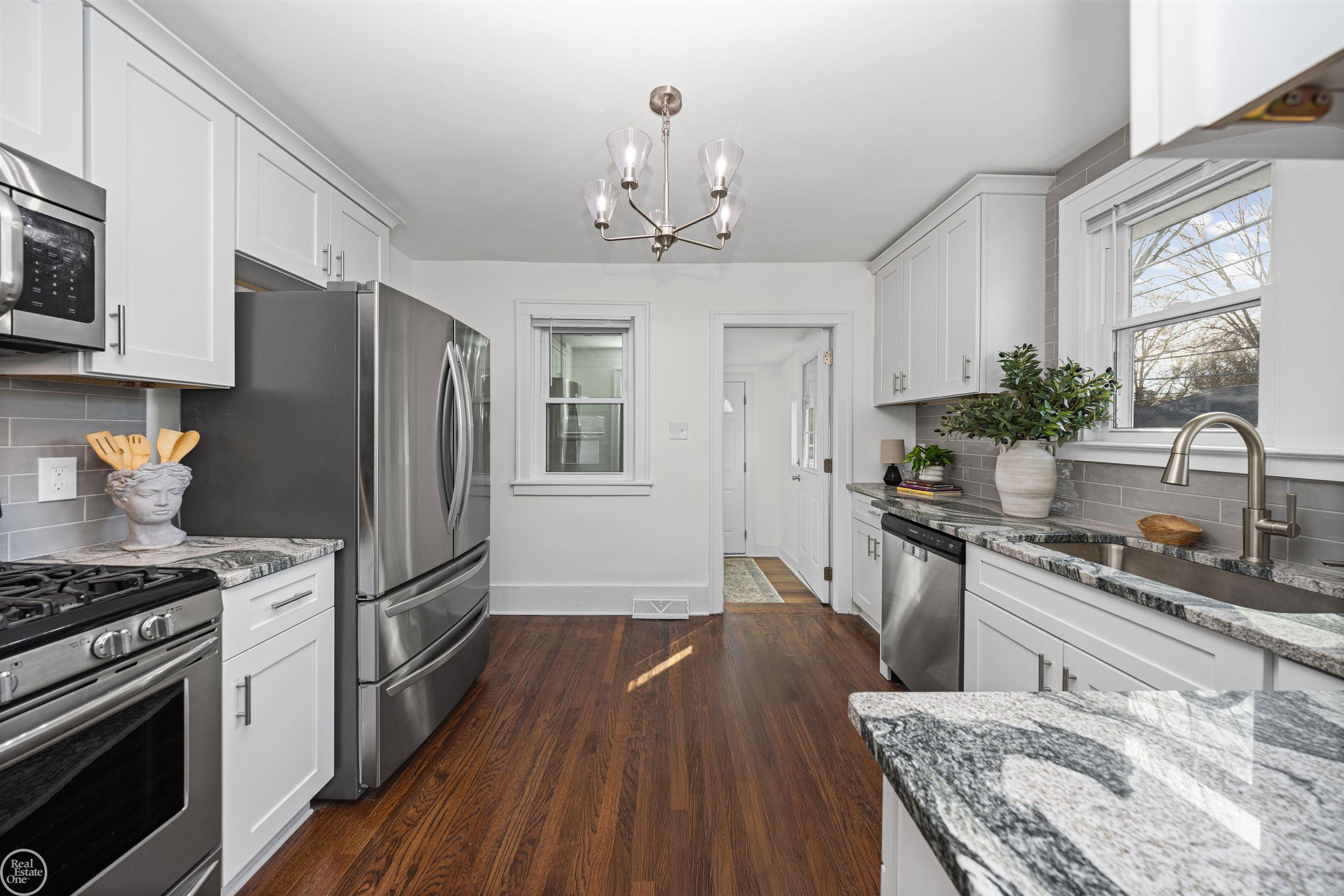 Home Features a brand new kitchen with all new cabinetry, upgraded granite countertops, crown molding, with all modern stainless steel appliances. The original oak hardwood floors have been professionally refinished. Enjoy all new windows throughout the entire home, new interior doors, new can lighting and fully updated electrical meter box and panel. The bathroom showcases a large new vanity with granite. Major mechanical improvements include a new 40 gallon electric hot water tank, new PVC drain lines, all new copper and PEX waterlines, a new laundry sink and standpipe and professionally cleaned HVAC ductwork. City has installed a brand new 1 inch copper water line from home to city water main.
