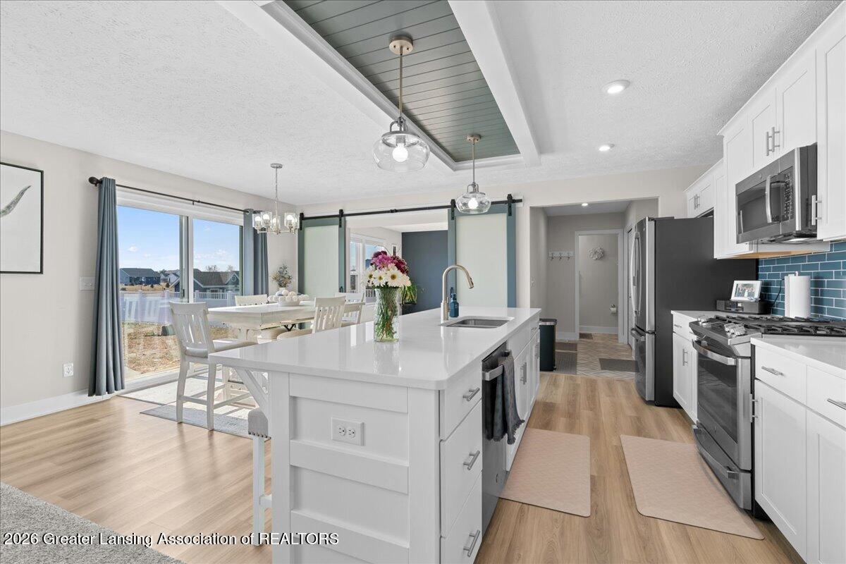 Welcome to Bingham Farms in the St. Johns School District! This STUNNING newer 2022 built home by Eastbrook Homes, one of the neighborhood's premier builders, is loaded with upgrades and completely move in ready! Featuring 4 bedrooms and 2.5 baths, this home has a beautiful open floor plan designed for both everyday living and entertaining. The living room flows seamlessly into the kitchen, where you'll find quartz countertops, upgraded stainless appliances, a custom tile backsplash, a tray feature ceiling, tons of cabinet space, and a spacious walk-in pantry. There's also a separate flex room that makes a perfect office, playroom, or formal dining space.The mudroom just off the 3-car garage adds everyday convenience.