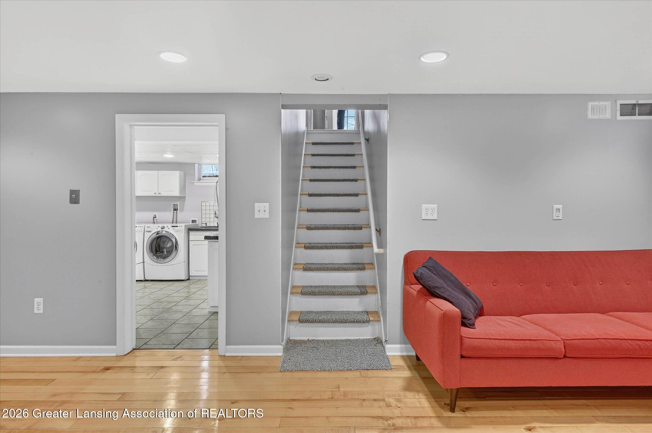 Welcome Home to 227 N. Hagadorn, a 4 Bedroom, 2 Full Bath Ranch home in the desirable Bailey neighborhood, East Lansing School district. Upon entering the home you will notice an expansive living area with fireplace with all hardwood floors on first level and into finished lower level. The Large Kitchen boasts granite countertops, extensive storage cabinets, vaulted ceiling with electronic skylight for ample nature lighting into the home. The finished lower level offers a second primary bedroom with large closets, an egress window, second full bath, large storage area and expansive laundry room that was custom designed, a must see! There is a large back yard with multi-level deck, nicely landscaped yard with a shed for outdoor storage and an attached garage. Driveway offer appx 6 spaces
