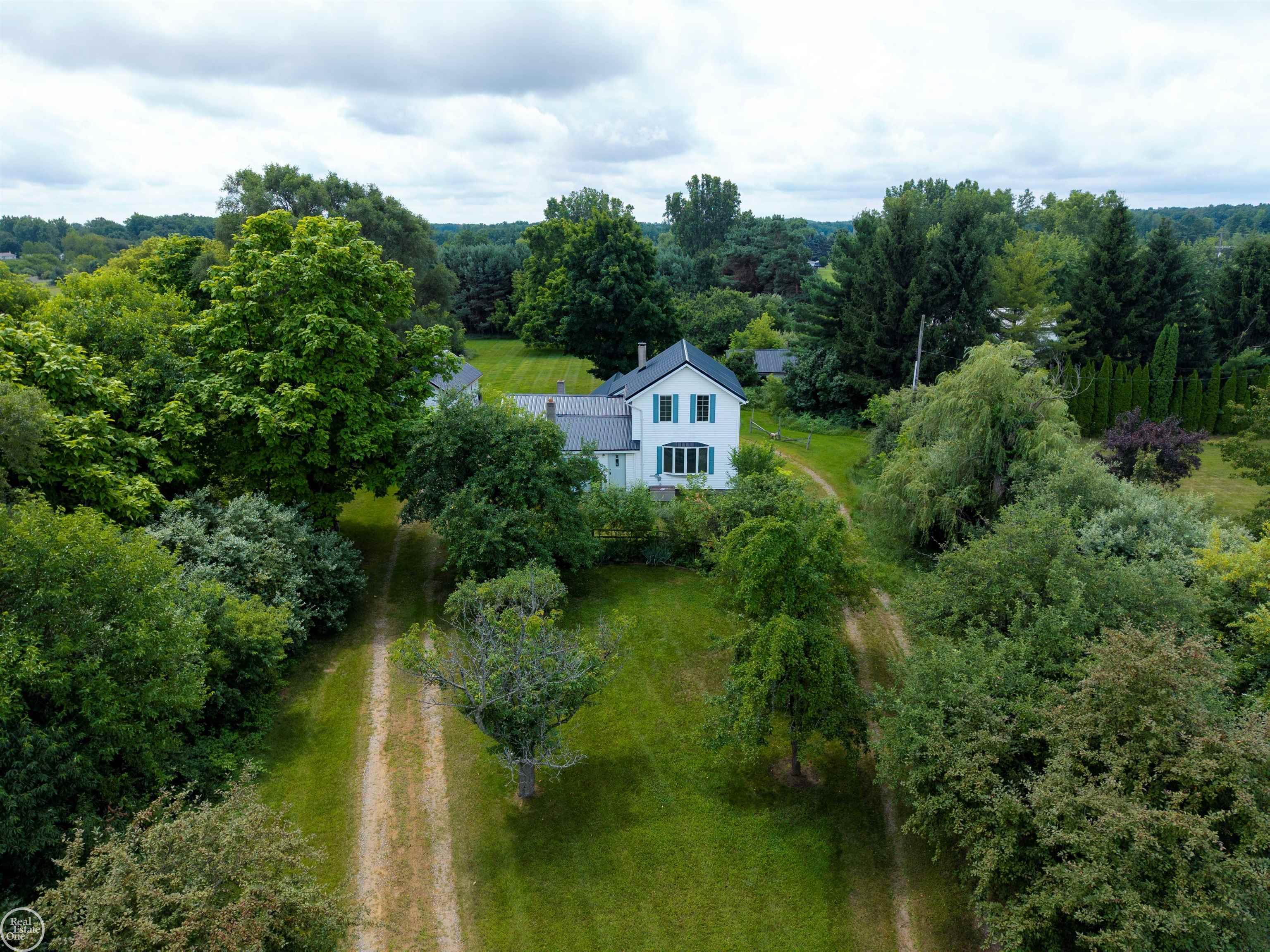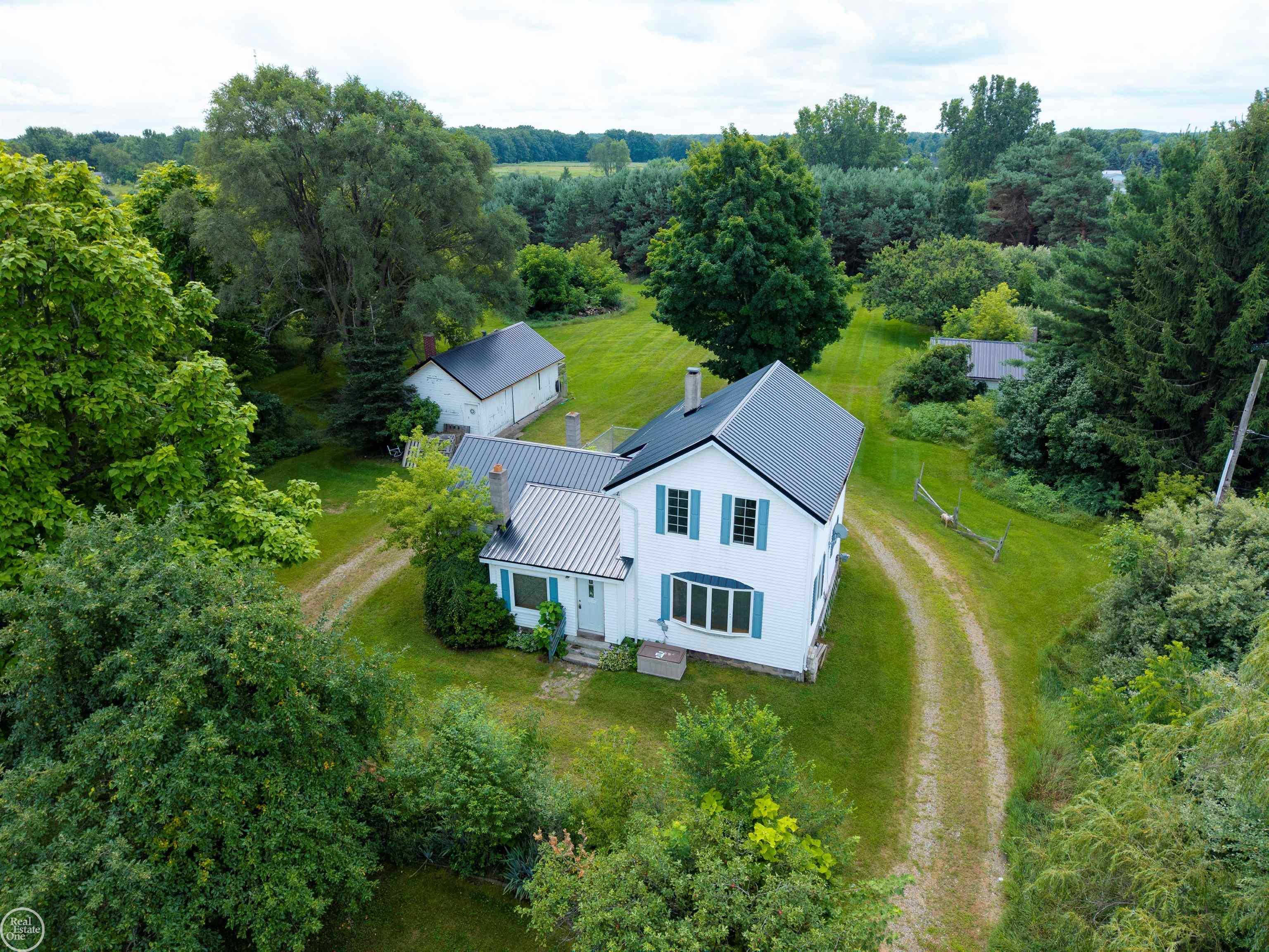 A great investment right here. Nestled on 4 acres of picturesque, partially wooded land, this property offers apple trees, pear trees, and raspberry bushes—your own private escape from the busyness of everyday life, yet roughly 15 minutes to Lapeer and 25 minutes to Imlay City. Not to mention, a 15 minute drive to LaBaron's MX track as well as a few others. Store dirt bikes, ATVs, cars, or entertain from your walk-out barn; start a hobby farm, or relax by a cozy bonfire under the stars. There's a fenced yard right off the house that is perfect for your pups. The centennial home boasts a new metal roof (2025), fresh trim, paint, and interior doors, granite countertops, original hardwood flooring, recently treated septic, and a foyer accented with exposed brick. Inside, you’ll find a spacious living room, dining area, and plenty of bedrooms to suit your needs—not to mention a classic Michigan basement with ample storage. With a little elbow grease, TLC, and your personal touch, this property is ready to shine. Come see its potential and make it yours today! BATVAI