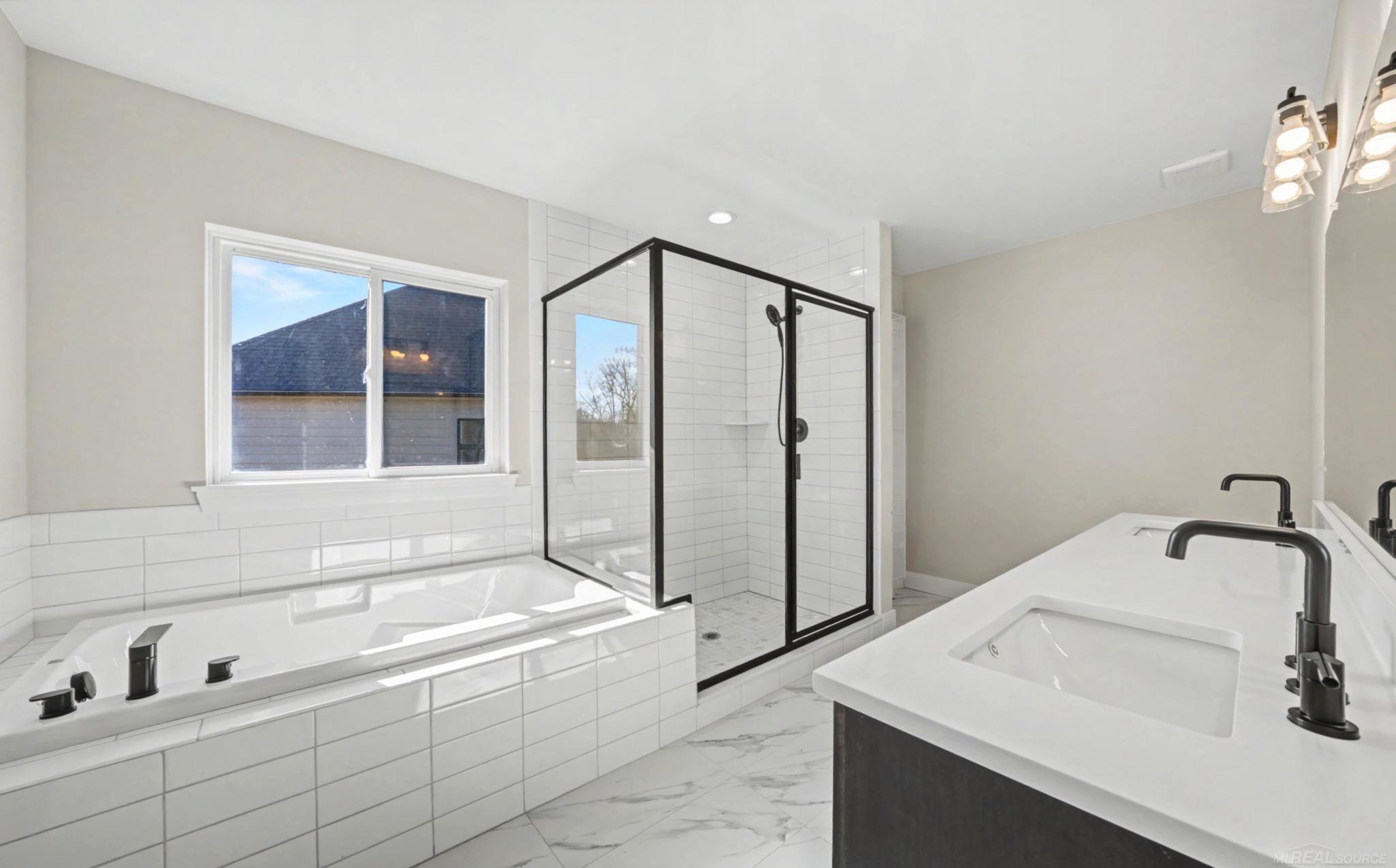 Stunning new construction offering exceptional design and craftsmanship throughout! This remarkable home features beautiful hardwood flooring across the entire first floor and an inviting open-concept layout. A dramatic two-story foyer welcomes you in, leading to a private den with French doors and a striking feature wall—perfect for a home office or flex space. The impressive great room is filled with natural light from expansive windows and showcases custom accent walls with built-in shelving, a gas fireplace with ceramic tile surround, stained beams, and a ceiling fan—creating the perfect space to relax or entertain. The gorgeous kitchen is truly the heart of the home, featuring Lafata two-toned cabinetry, a hood vent, large walk-in pantry, coffee bar area, island, recessed lighting, and a spacious nook with a door wall leading to the backyard. Upstairs, you’ll find four generously sized bedrooms, including a luxurious primary suite with a step-up ceiling, ceiling fan, large walk-in closet, and a spa-like en suite bath complete with dual vanities, a soaking tub, and a separate shower with glass door. Additional highlights include a convenient second-floor laundry room and a functional first-floor mudroom with built-in bench and cubbies. This home perfectly blends modern elegance with everyday functionality—don’t miss your opportunity to make it yours!