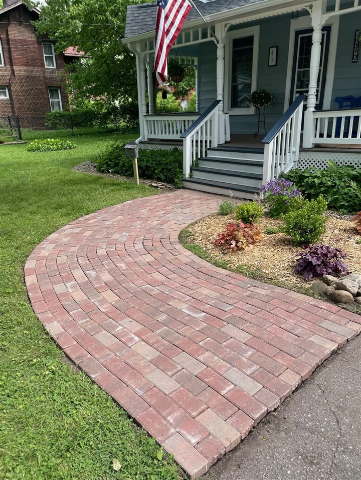 Imagine morning coffee on the wraparound porch surrounded by beautiful perennial gardens. Step into this charming traditional style home, where historic craftsmanship meets thoughtful modern updates. Situated on an extra-large, beautifully landscaped lot, the home is highlighted by a welcoming covered wraparound porch--perfect for relaxing mornings and quiet evenings. From the moment you enter, the pride of ownership is unmistakable. Rich original oak woodwork showcases the home's heritage, while the open staircase features an authentic Victorian newel post crowned with a rounded finial and detailed carved panels. Historic charm continues with decorative Edith Wharton-style door hinges in the upstairs bedroom, along with numerous built-ins and hardwood accents that add warmth and character throughout. The spacious, cheerful dining room provides an inviting setting for gatherings.