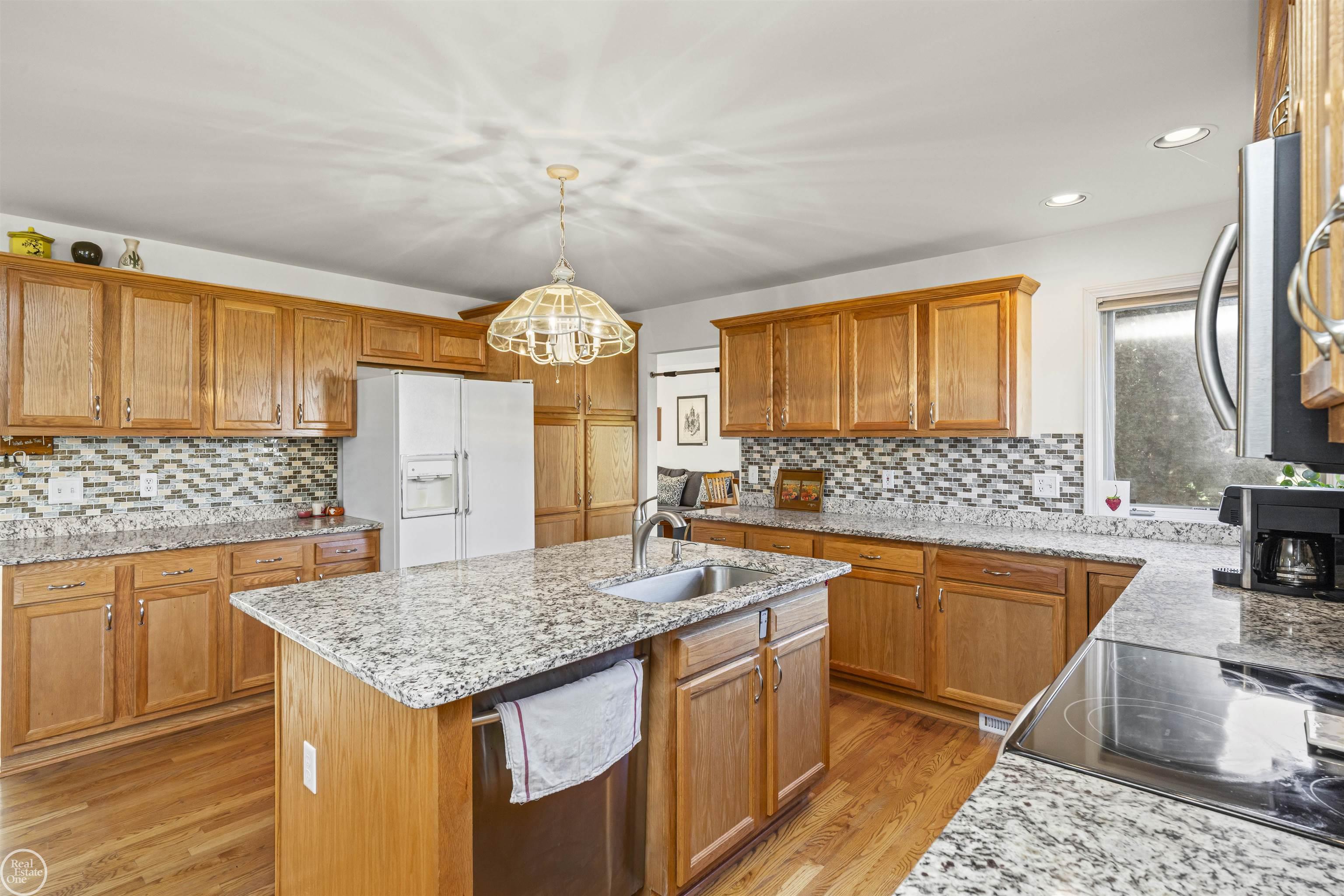 Located in the prestigious Vinyards subdivision of Sterling Heights and within the award-winning Utica Community School District, this impressive four-bedroom colonial offers generous room sizes and an ideal layout for comfortable everyday living and entertaining. The heart of the home is the beautifully appointed kitchen with plentiful cabinetry, granite countertops, stainless appliances and an oversized island, flowing seamlessly into the huge two-story great room highlighted by soaring ceilings, sun-filled windows, and a gas fireplace. A formal living room, elegant dining room, and a private office with French doors provide flexible spaces for both entertaining and working from home. A winding staircase leads to the expansive primary suite featuring a huge walk-in closet and a private bath with dual vanities, jetted tub, and separate shower. Three additional spacious bedrooms and a second full bath complete the upper level. The home also features first-floor laundry, newer Wallside windows, a roof approximately 10 years old, and a hot water heater only 2 years old. The extra-deep poured basement offers outstanding potential for future finishing and added living space. Ideally located close to expressways, shopping, and dining, this home delivers both luxury and convenience. All appliances are included — truly move-in ready in one of Sterling Heights’ most sought-after neighborhoods.