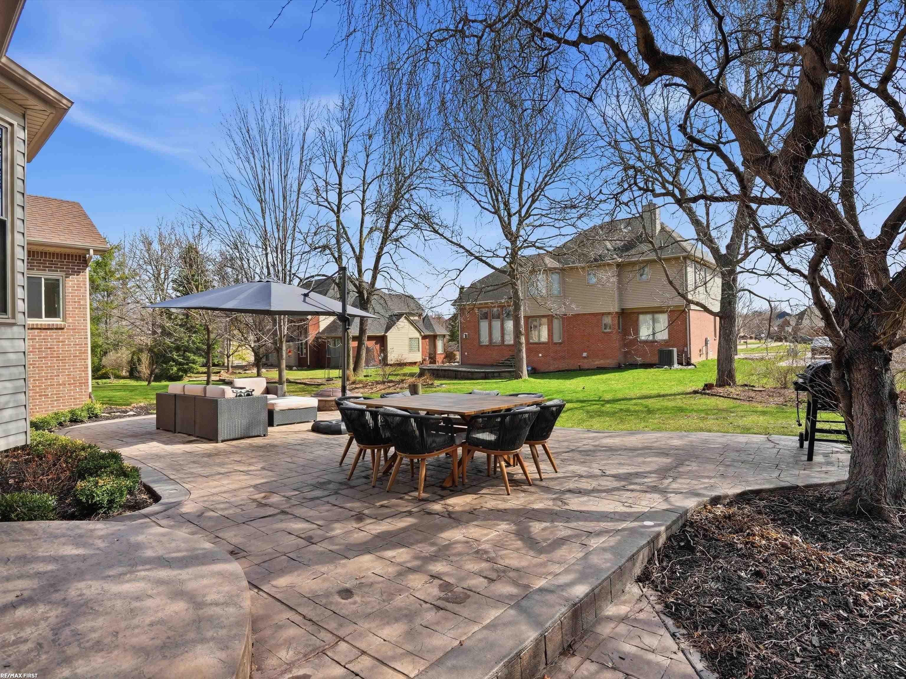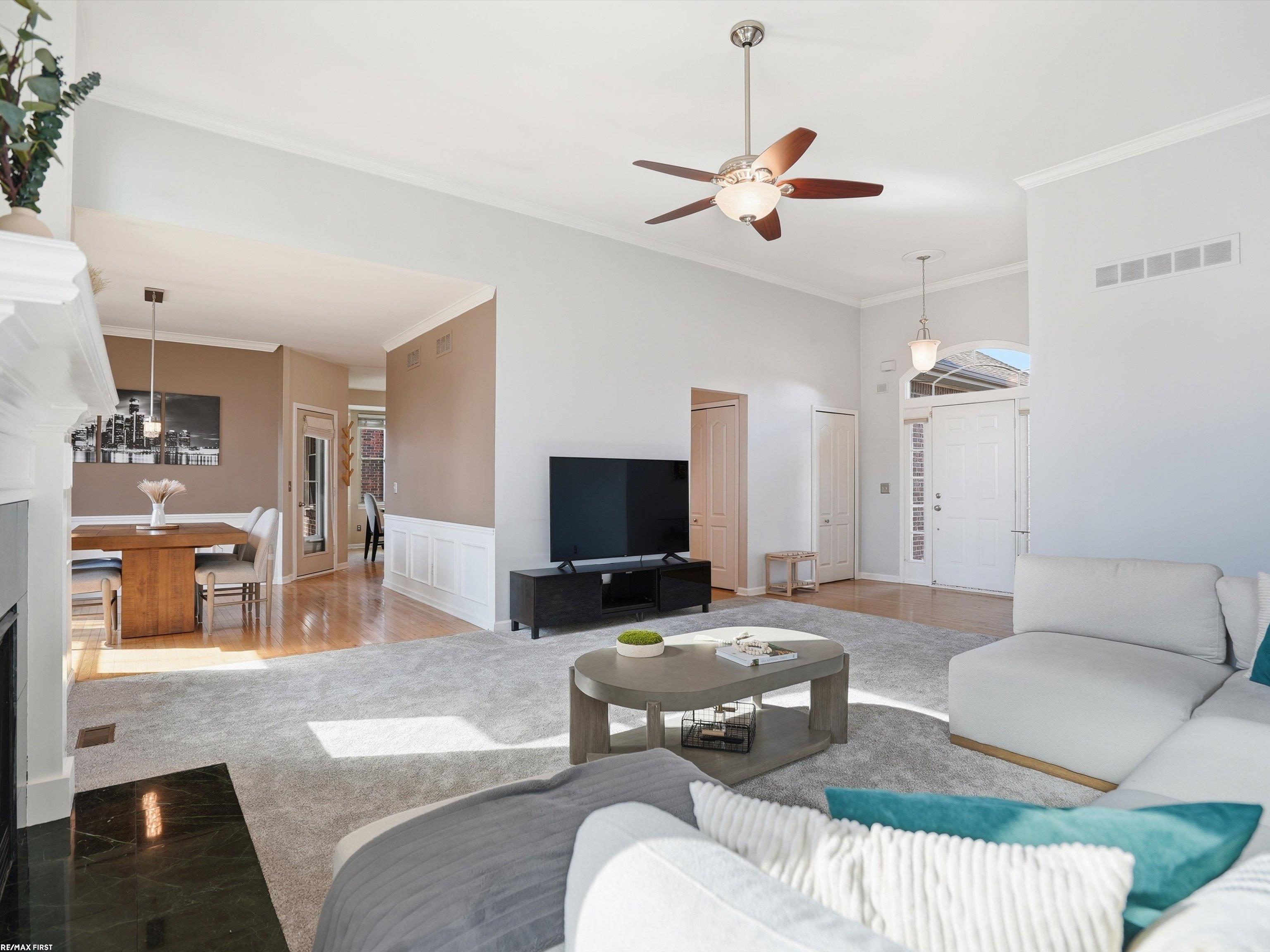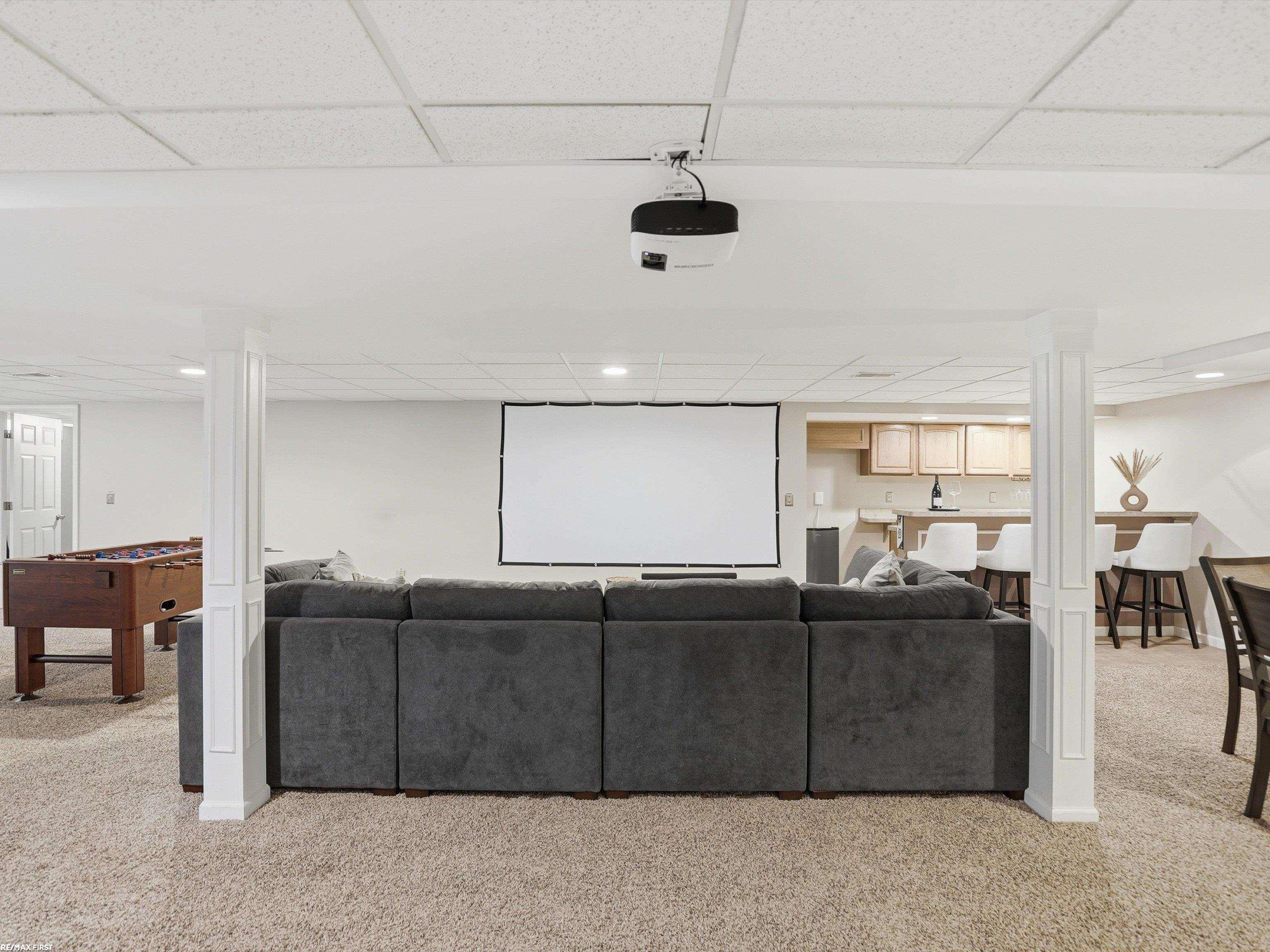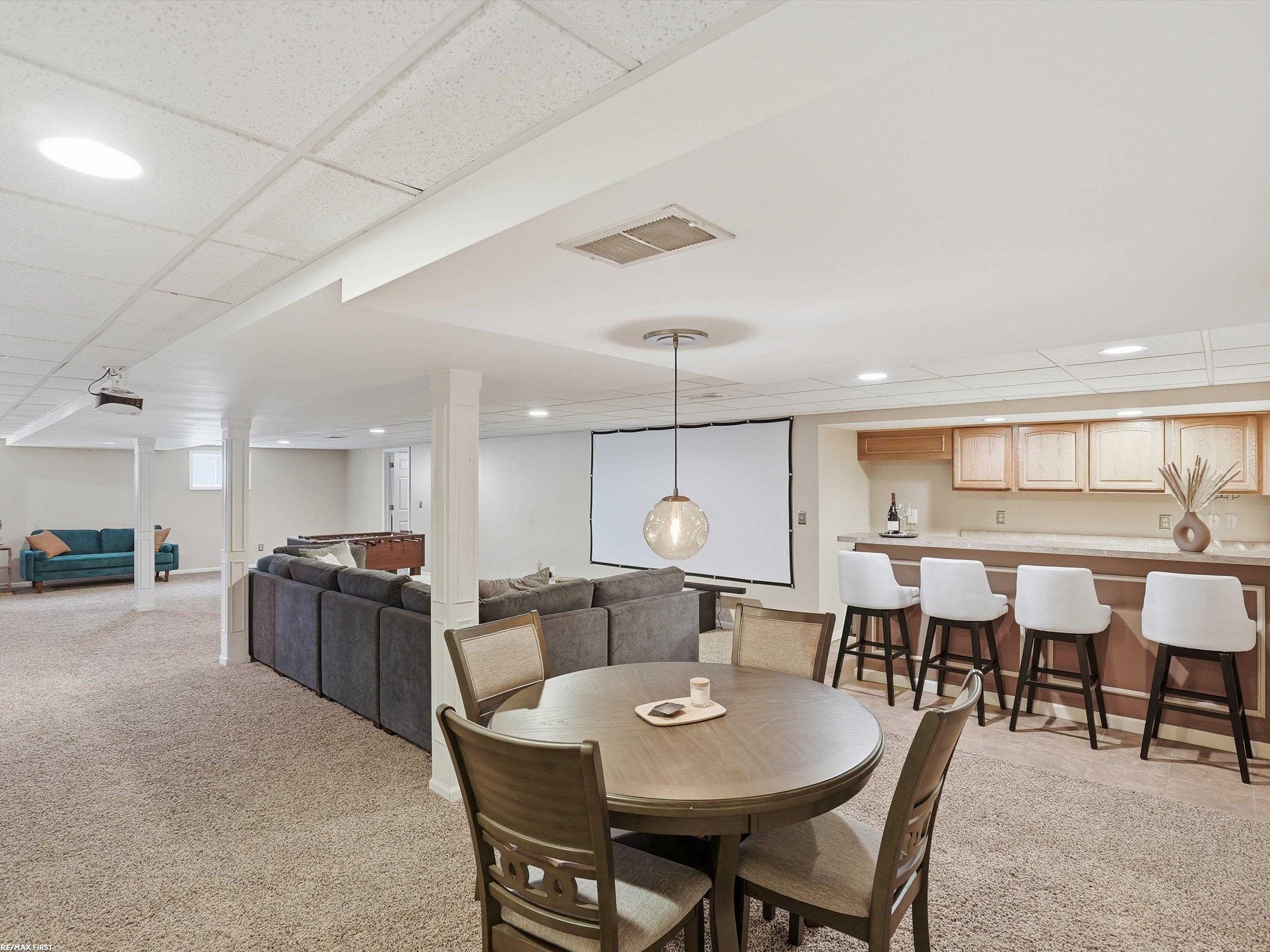 Experience stress-free living with this charming new detached condo that just hit the market! Step into a cozy living room featuring a gas fireplace and impressive 9-foot ceilings, perfect for relaxing or entertaining. The primary bedroom offers a spacious walk-in closet, an attached bathroom with a luxurious jetted tub, and a roomy shower. Enjoy the elegance of hardwood floors in the dining room and kitchen. The finished basement is an entertainer's dream, complete with a dry bar, an additional full bathroom, a projector, and a built-in screen. Outside, you'll find a delightful covered porch and an expansive stamped patio, ideal for outdoor gatherings. With new carpet and a Lennox Elite furnace, this home offers comfort and convenience. Plus, the low HOA fee includes lawn care and driveway snow removal, ensuring hassle-free maintenance. Don’t miss this incredible opportunity for low-maintenance, high-comfort living!