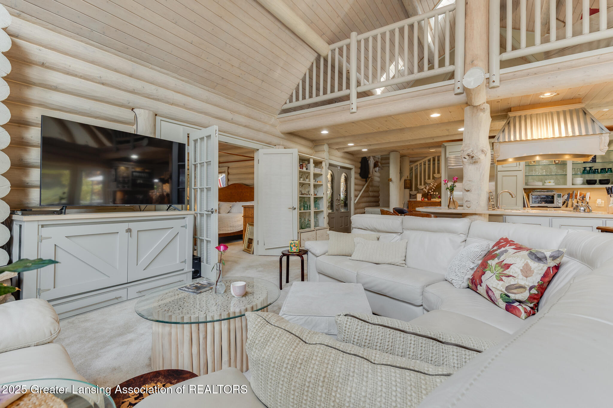 Welcome to 6950\6930 Brown Road--an extraordinary appx 115-acre estate offering two beautifully crafted log home residences, a private lake, expansive pastures, and a lifestyle unlike anything else on the market. Originally inspired by a magazine home and thoughtfully customized by the owner, the main residence was crafted in 1998 from Montana White Pine hand-hewn logs. Its timeless presence is accented by a historic row of stones that has stretched across the property for more than 100 years, grounding the home in a sense of true heritage. Step inside the main home to experience an open, light-filled interior framed by massive floor-to-ceiling windows showcasing breathtaking views of the property and lake. The chef's kitchen is designed for both daily living and unforgettable entertaining.