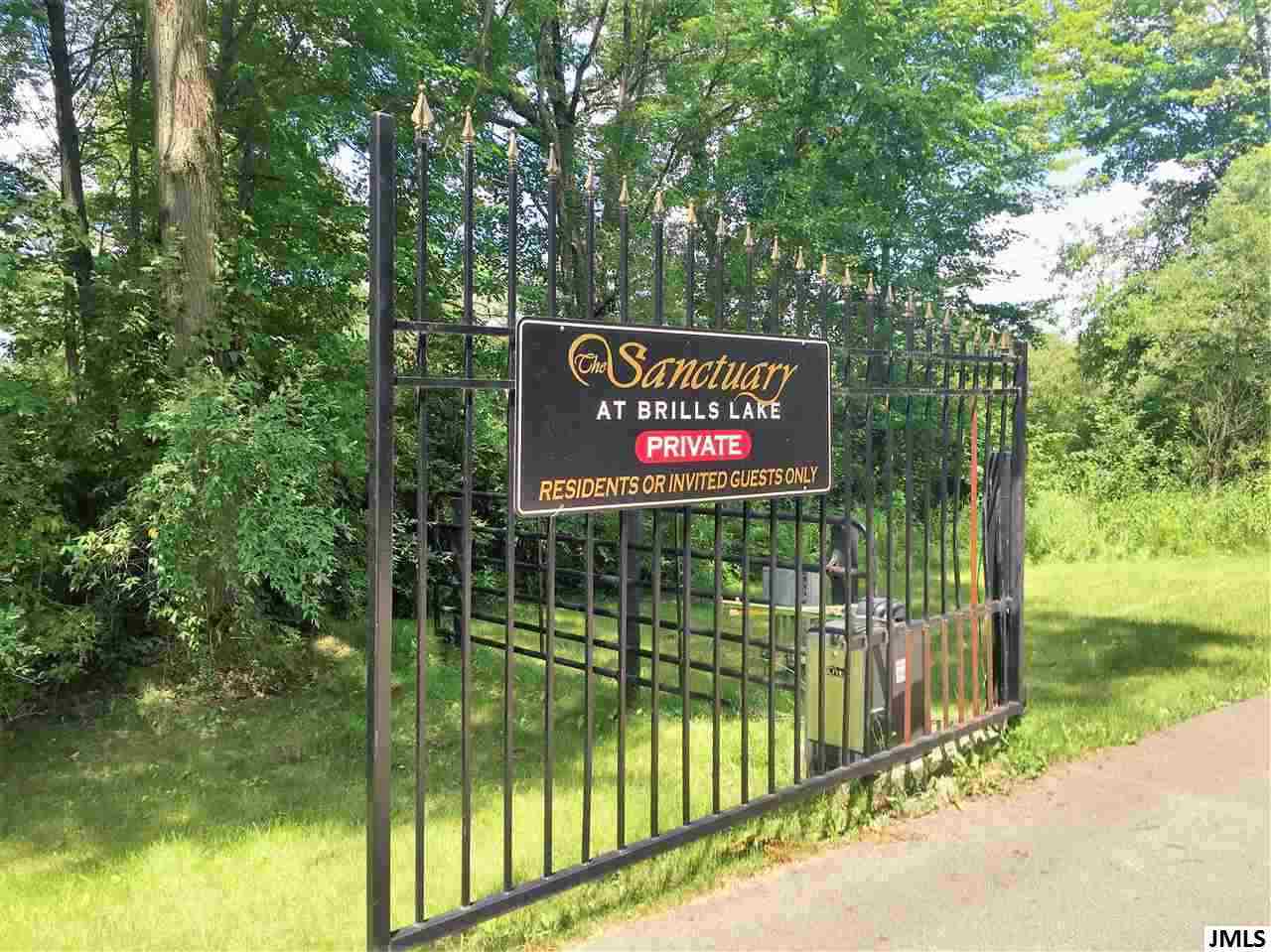 All sports Brill's lake picturesque 2.16 acre wooded lakefront lot. 125 feet of lake frontage in a beautiful, peaceful and gated community. The 140 acre subdivision has street lights, paved roads, walking trails and a community dock on an all sports lake. Utilities and sewer already at the street. Easy access to 1-94 for an easy commute. $125 quarterly sewer assessment.
