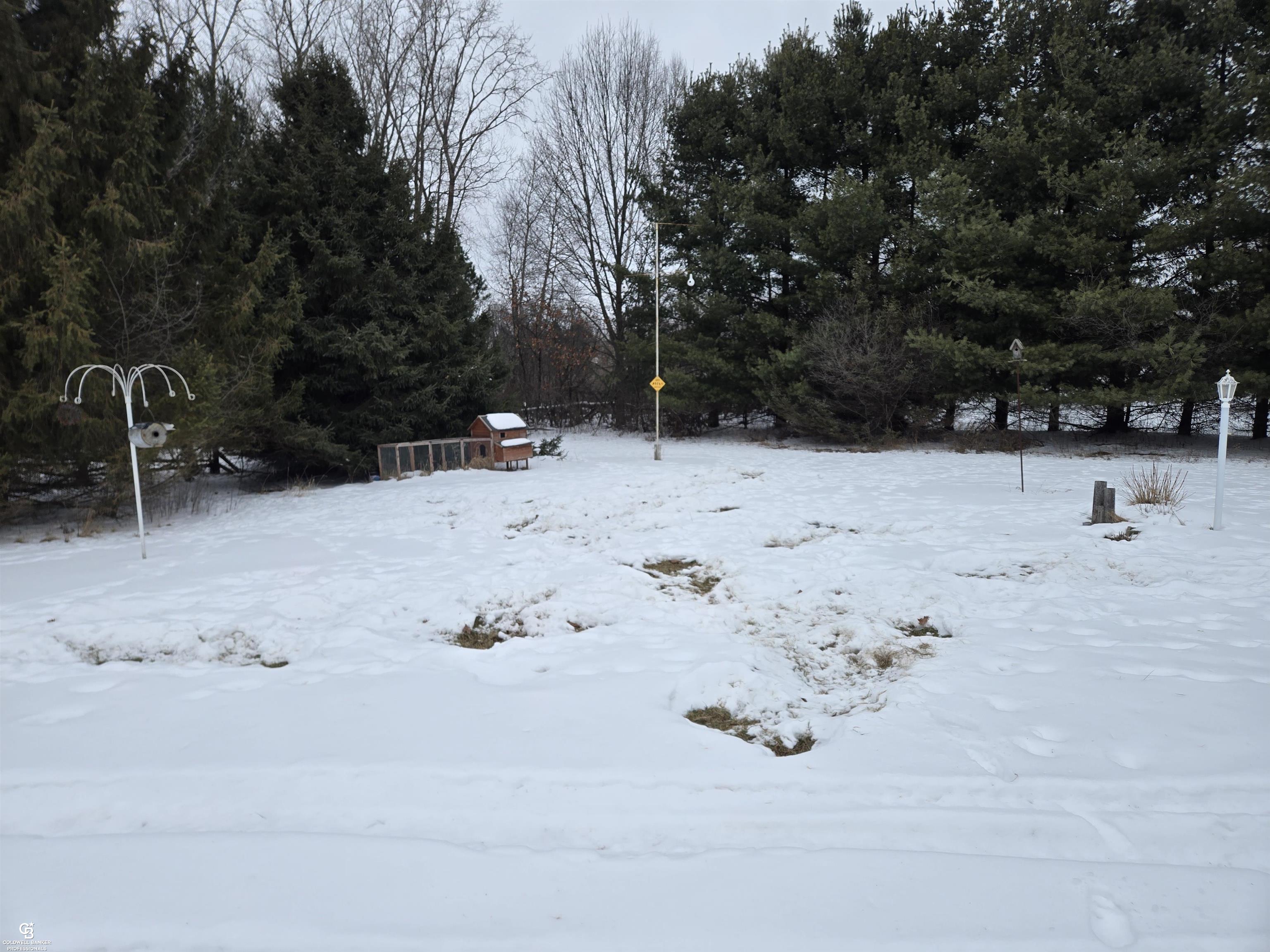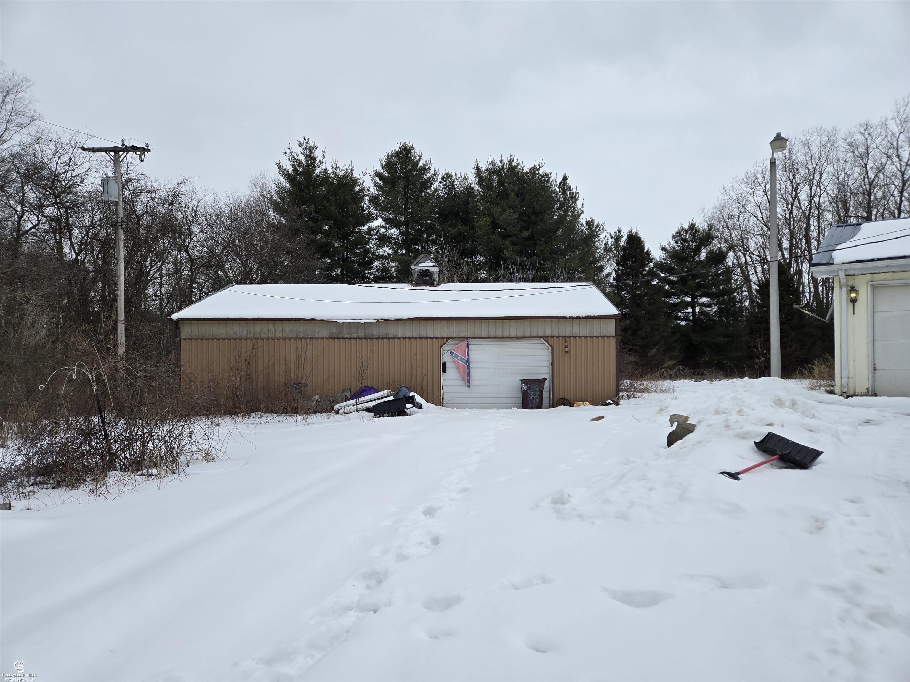 This ranch home on acreage has much potential. Property is in need of much work, but could be a nice residential home when completed. Home has full basement, bath in master bedroom. Home has some wood floors. Large deck on the back needs work but could be a great place for summer gatherings. 30x48 pole barn has workshop area, electric and cement. The lot has many trees and with some TLC could be very nice.