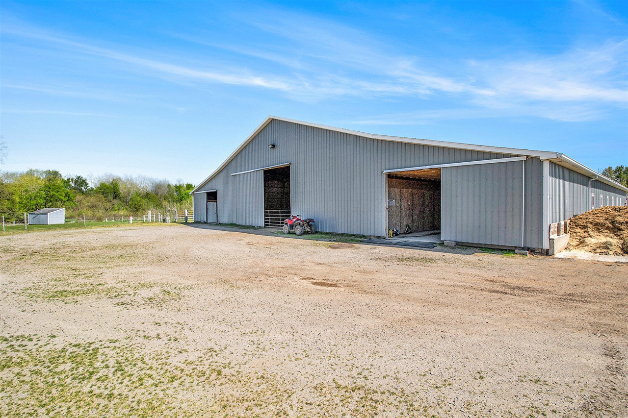 Experience the ultimate equestrian lifestyle at this exceptional horse ranch! Featuring a 60'x120' indoor riding arena, 11 indoor stalls, and a horse washing station, it's a dream setup for horse enthusiasts. Multiple fenced pastures and run-in shelters provide ideal conditions for your herd. A heated 5-car detached garage offers ample space for vehicles and equipment. Enjoy cozy, comfortable living in the 1,000 sq. ft. quarters, complete with a stunning stone fireplace and an open kitchen/living layout perfect for relaxing after a day with the horses. This is country living at its finest!