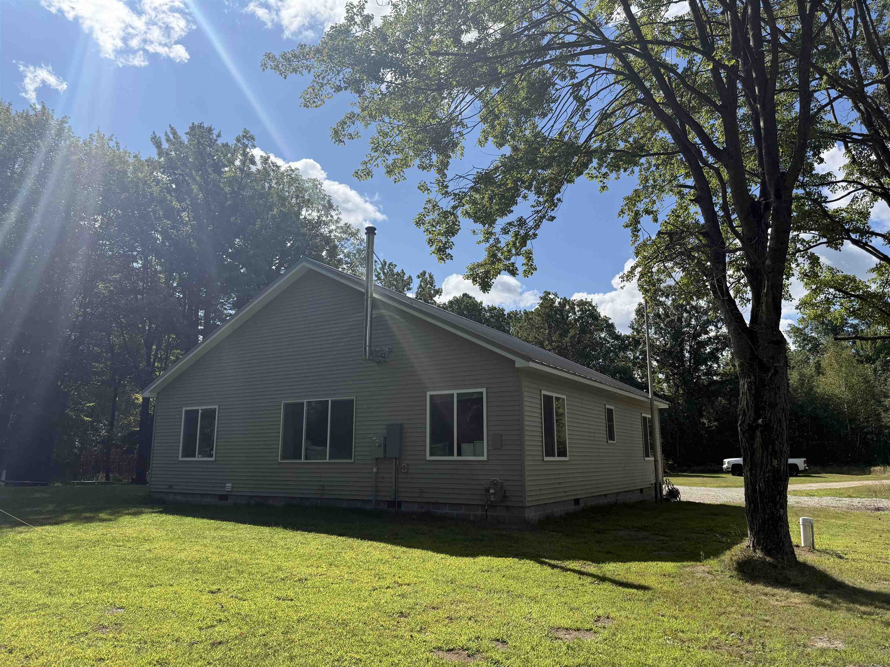 Country Charmer in Gladwin County! This newer construction home situated on just over 47 acres offers privacy, seclusion, and abundant wildlife. The 1,600 sq ft residence features 3 bedrooms and 2 full bathrooms with a semi-open floor plan. The expansive kitchen offers a large island with seating and an oversized walk-in pantry which is adjacent to the living room with its cozy wood stove for supplemental heat. The spacious primary suite includes a large private bath and walk-in closet. A new water softener system has recently been installed in the oversized laundry room. Additional features include an attached 2.5 car garage and multiple outbuildings: a second garage, two-story pole barn with cement floor, electricity, and hoist, guest house with electrical, sap house, tool shed and deer blind. The land is heavily wooded and provides an excellent hunting environment with deer, turkey, and small game birds. No close neighbors here. With rideable trails throughout, this property is ideal for hunters, nature lovers, or those seeking a private Northern Michigan retreat.
