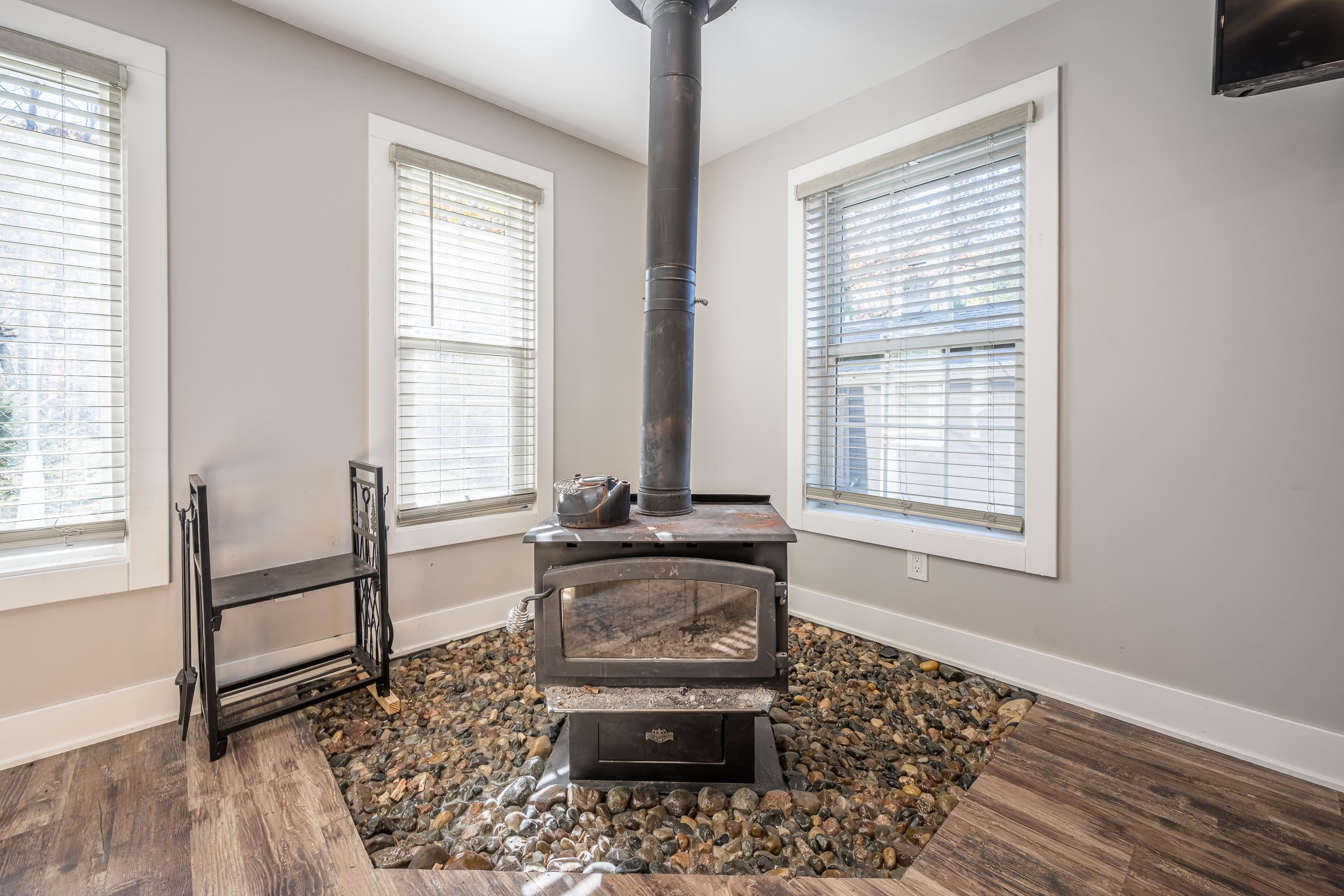 Attention hunters, fisherman, short term rental investors and Up-North vacation home seekers! Centrally located between Gladwin and West Branch, this is the listing you've been waiting for! There is room for everyone in this 4 bedroom/2 bath luxury, waterfront cabin. Everything is fresh and new! This offering has been fully and thoughtfully remodeled, to include siding, roof, plumbing and electrical and sits on nearly an acre with a dedicated dock easement to private Cedar Lake. You will love your sandy beach area and fishing for bass and panfish from your new dock or kayaking the beautiful 10-acre private lake. Within walking distance, you will find 1000's of acres of state land to explore. There is a charming, detached guest house for holiday overflow that features its own sunroom area, bathroom, built-in bunkbeds and kitchenette. Inside the main house, you will be impressed with the gorgeous luxury flooring throughout, spacious living room with cozy woodstove and beautiful epoxied river stone accents. The screened in porch can be enjoyed all year! The seller has plexiglass inserts available and once you open the slider door, you can bask in the comfortable heat of the woodstove while enjoying the natural beauty outdoors. All the appliances are new and included and this cabin is being offered fully furnished (minus the 2 sectional couches and dining room curio cabinet/hutch), making this a truly turnkey prospect. You will love the high-end sleep number bed and walk-in shower in the primary suite and the enclosed dog runs for your family pets. All new windows, doors and walls, spray foam insulation, whole house water filtration system, central air and spacious shed make this stylish cabin an outstanding spot for 4 seasons of fun and relaxation. Schedule your personal showing today!