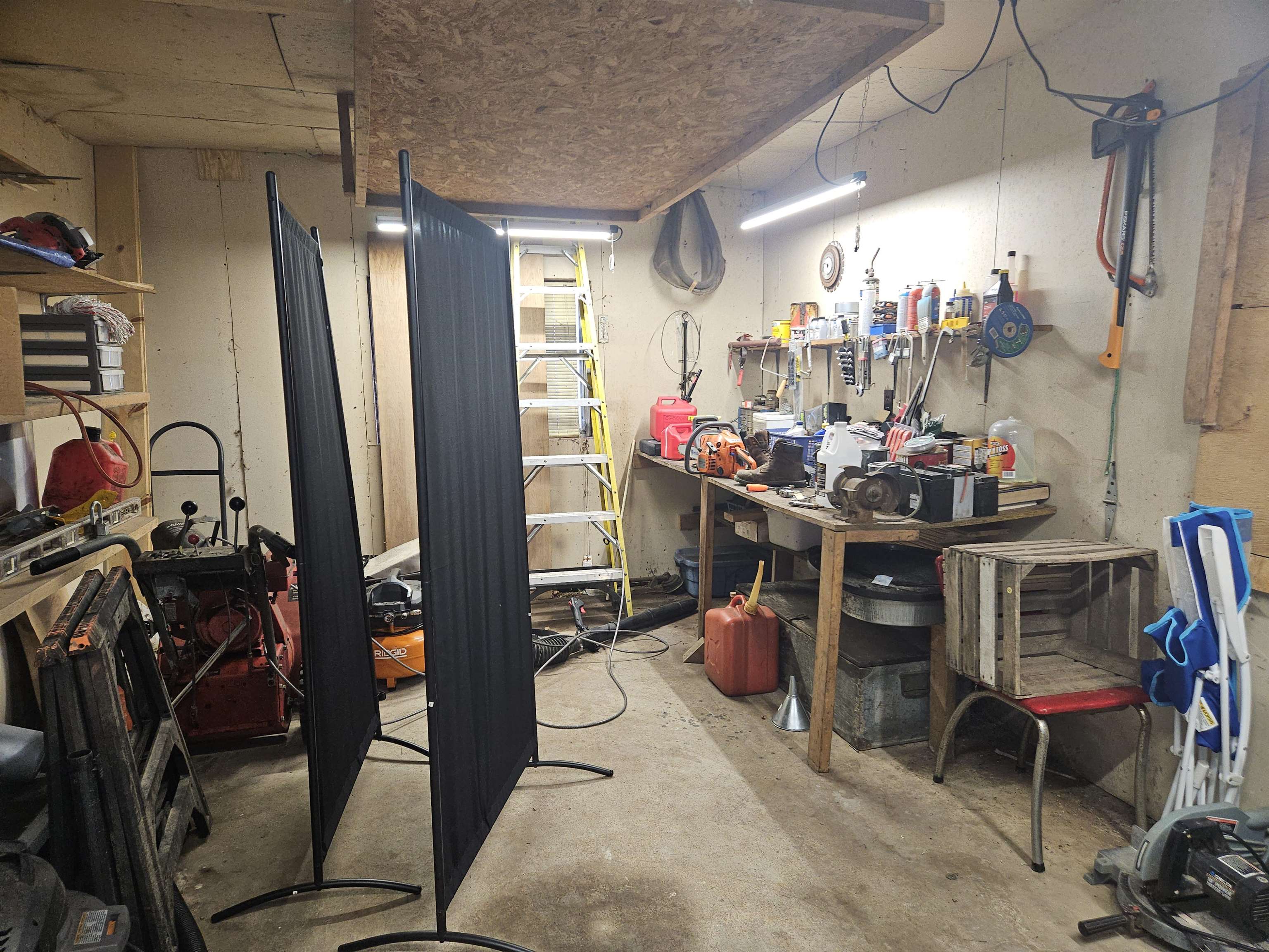 Awsome on Arnold Lake Rd... Spacious well kept half log home with open floor plan, tongue & groove, drywall and brick accents. 1 bedroom with full bath,loft,attached garage for the car!. Nice patio for sitting out , fenced yard for the kids or pets. Long storage shed with 4 spots for the toys and firewood. Seperate drive to the back yard. Freshly painted exterior and steel roof in 2025. Close to Trails, Stateland and 20 Lakes!