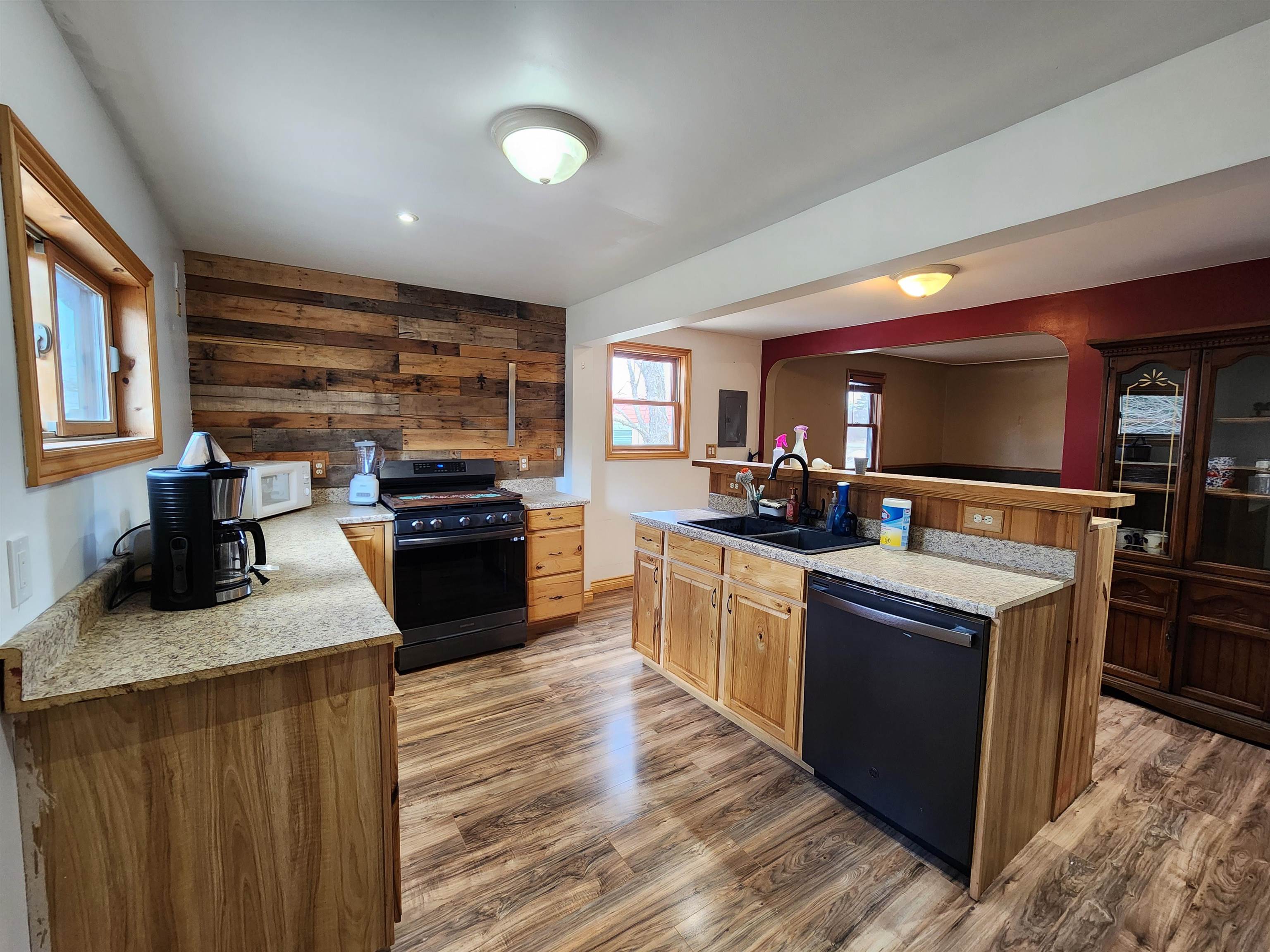Set on nearly an acre along a paved, county-maintained road, this nicely updated 2 bedroom, 1 full bath property offers incredible versatility as a year-round home, up-north retreat, or potential commercial opportunity. Inside, you’ll find beautiful hardwood flooring throughout most of the home, complemented by laminate in the kitchen, separate laundry room, and one bedroom, along with ceramic tile in the bathroom. The bathroom is a true highlight, featuring a beautifully renovated walk-in ceramic tiled shower paired with a charming stand alone tub for a perfect blend of modern convenience and classic character. The home also offers a dedicated laundry room, a 13x20 attached garage, and an impressive 30x48 pole barn—ideal for storage, toys, or workspace. Additional features include a 5" well, owned propane tank, vinyl siding, double pane windows, and included appliances that are only about 3 years old (stove, refrigerator, dishwasher, microwave, washer, and dryer). Located just minutes from state land, ORV trails, and several lakes for fishing, boating, and swimming, this property delivers the best of Northern Michigan living with space, functionality, and opportunity all in one.