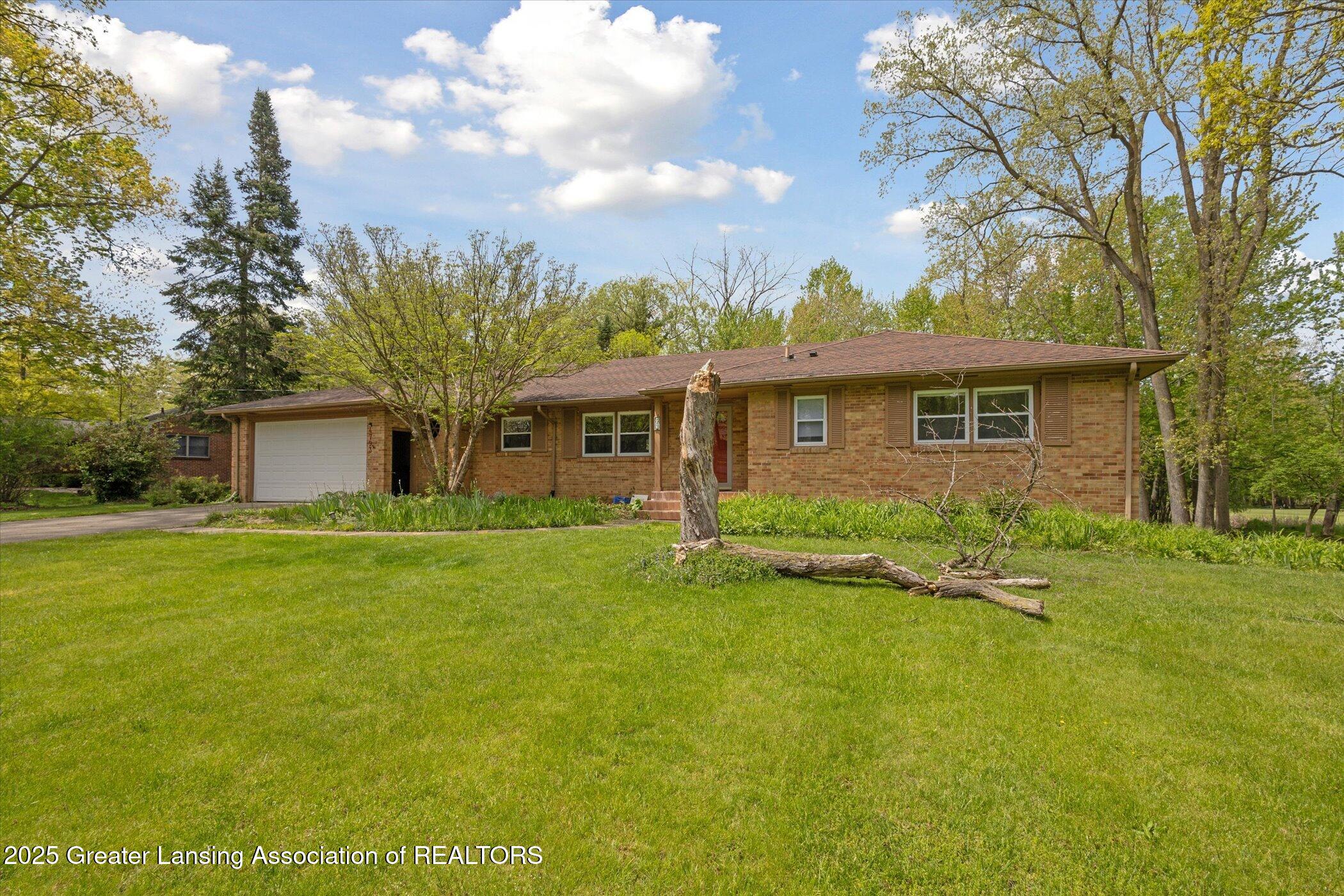 Welcome to 4793 Ottawa Drive, Okemos - Indian Hills! Back yard expanding, horizon golf course views - you are going to love it. Over 2,100 sqft living space. This brick ranch offers many lifestyle options - live and work at home - all on one level. The back of the home is loaded with large windows, a gas fireplace and plenty of hardwood floors (living room, dining, kitchen, eating area and all three bedrooms). 1st floor washer/dryer compliments the space. Expansive kitchen w/great work space, opening to the great room to let the views and light shine thru. Office or work space w/door to deck. 3 bedrms. Lrg full bath on the main level w/a convenient half bath off the garage. Partially finished lower level. Level & room measurements are estimates per board requirement.