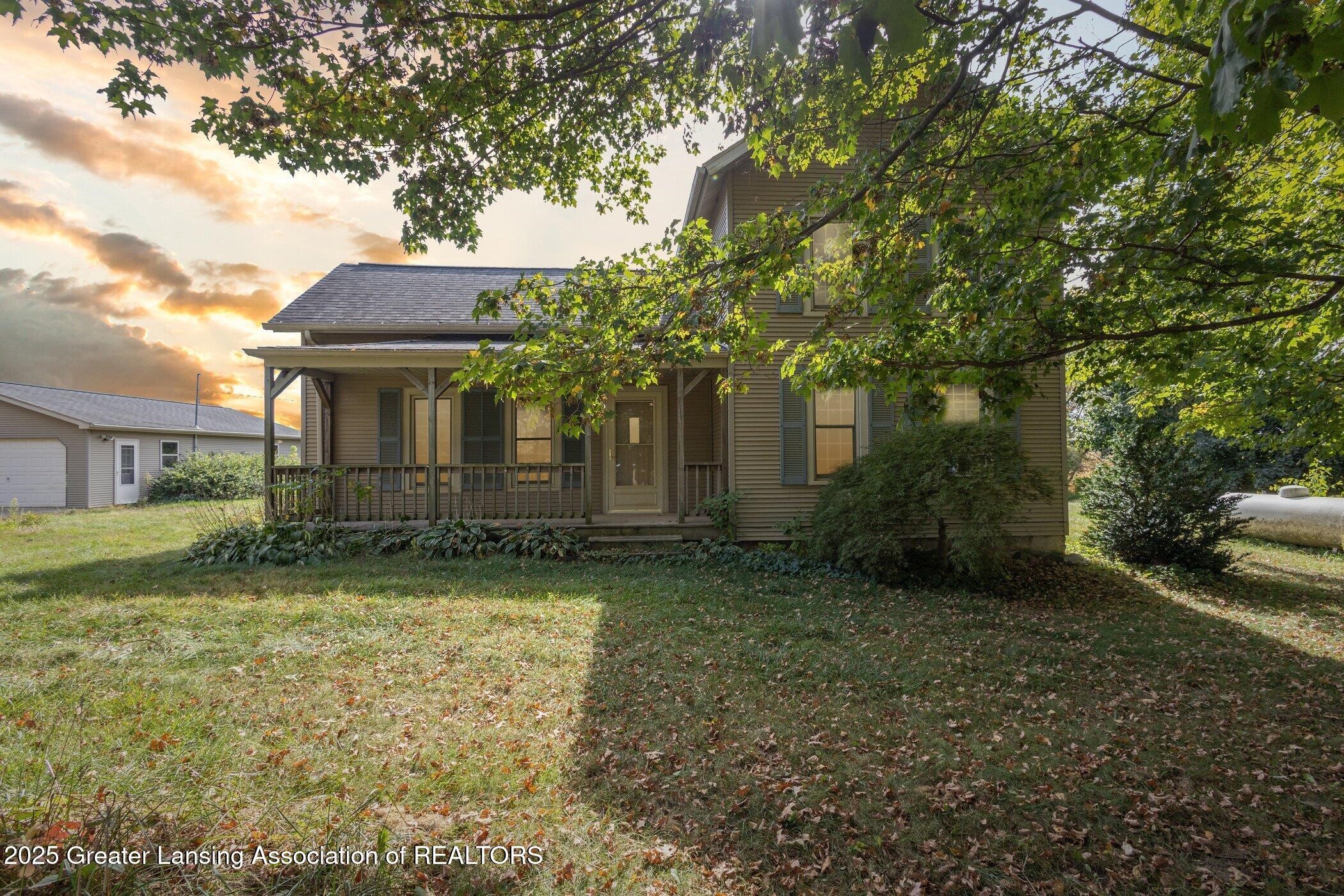 CHARMING FARM HOUSE IN SECULDED COUNTRY SETTING WITH OVERSIZED GARAGE THAT HAS A HUGE REC ROOM OR WORKSHOP AT REAR OF BUILDING. LARGE KITCHEN WITH DINING AREA. LARGE LIVING ROOM, PARLOR (NOW USED AS PRIMARY BEDROOM), AND 2 BEDROOMS ON SECOND FLOOR, PLUS ATTIC ACCESS. MAIN FLOOR LAUNDRY ROOM, FULL BATH AND STORAGE ROOM. SUNDECK AND ADDITIONAL STORAGE BUILDING.