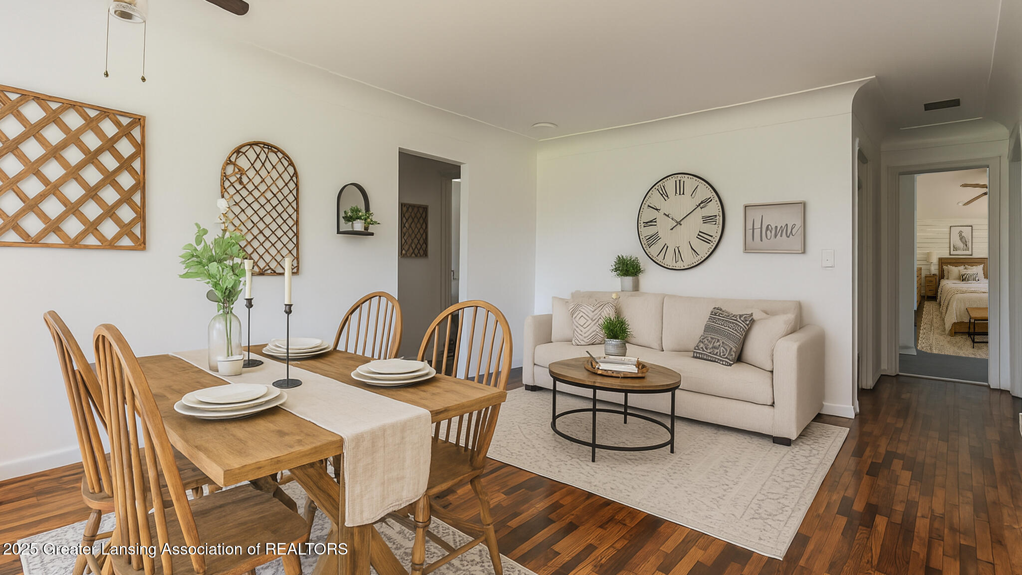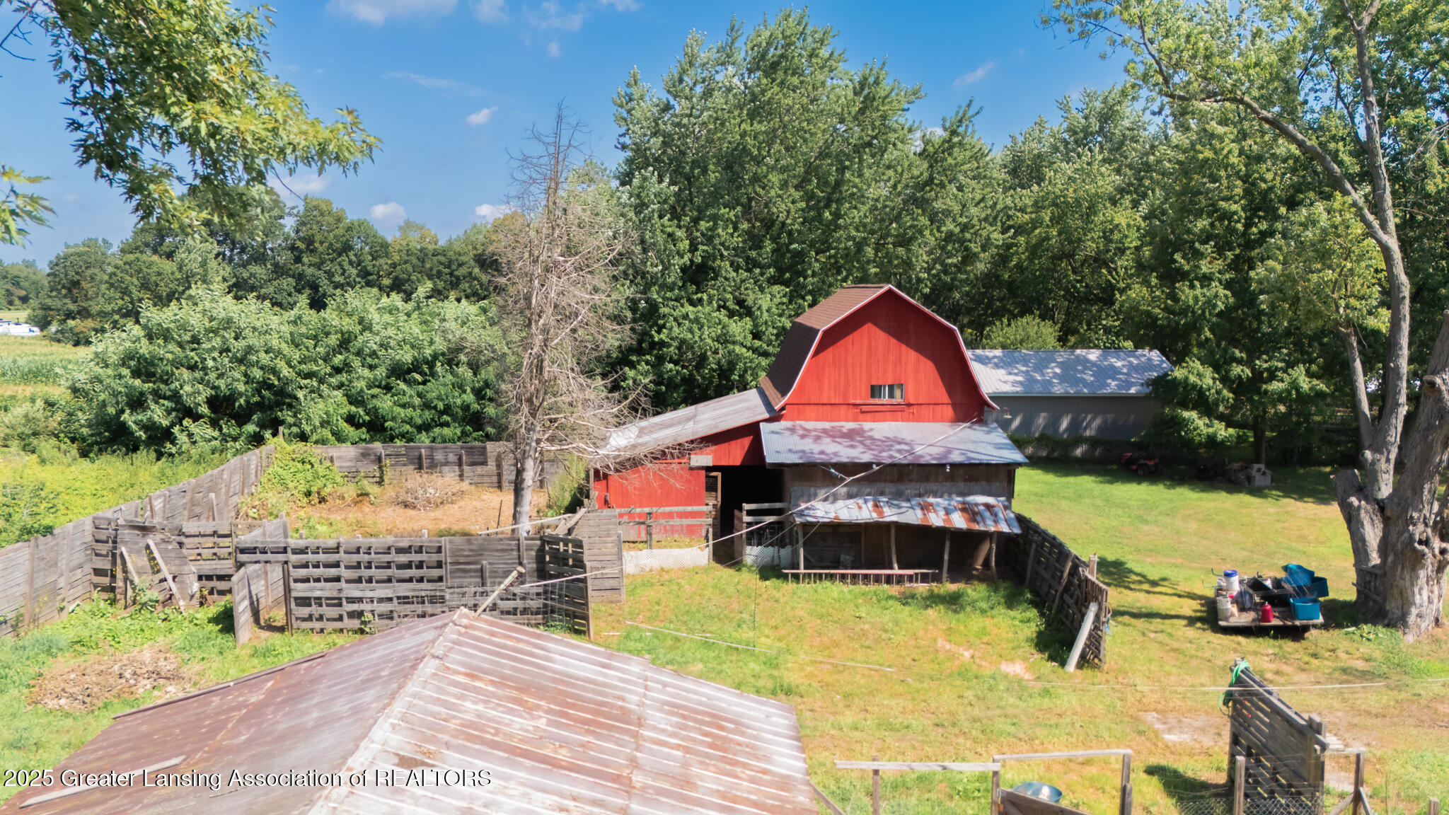 Tons of potential await at this 10-acre property in Mason, which was recently a working farm! This brick ranch includes a living room with large windows and genuine hardwood floors, an updated kitchen, a large family room, 3 bedrooms and 2 full bathrooms. Fresh paint throughout. Upstairs includes over 500 square feet that for a rec room, office, play area or be converted into 1 or 2 additional bedrooms. The basement is clean and unfinished, providing tons of room for storage or additional living space. There is a ginormous deck perfect for summer BBQ's or entertaining. A large barn and a second outbuilding are ready for your toys, hobbies, or storage. Seller is working to obtain a conformance letter from the Ingham County Health Department for the well and septic systems.