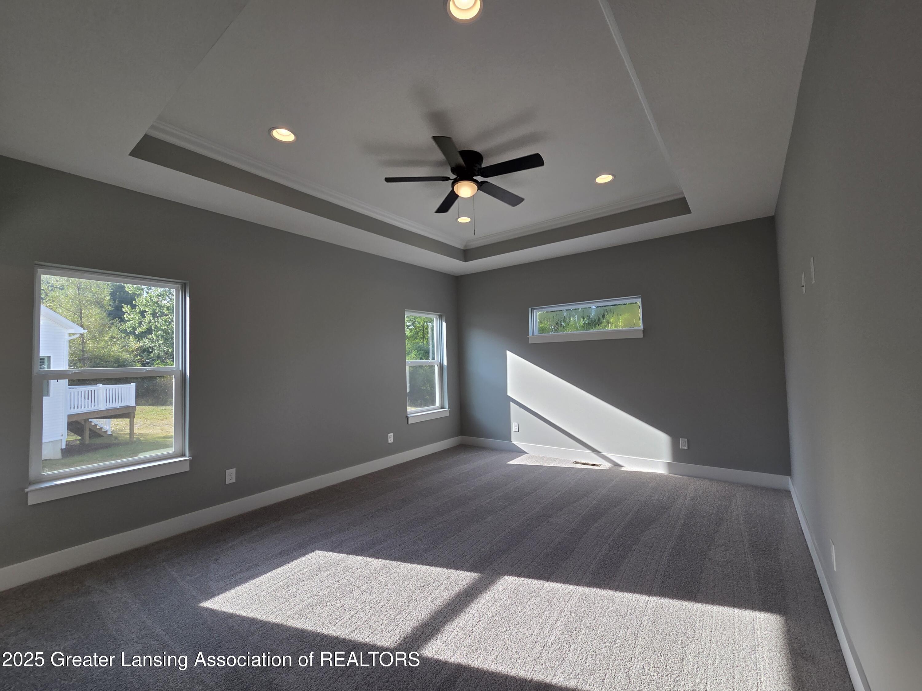 Welcome to Northwoods of St. Johns! This beautiful condominium offers approximately 1,831 sq. ft. of living space with a modern, open floor plan for easy flow throughout the main level. The great room features 10' tray ceilings, laminate flooring, recessed lighting, and a ceiling fan for added comfort. The kitchen includes Quartz countertops, a stylish tile backsplash, abundant cabinet space, a pantry, and stainless steel appliances. The primary suite also boasts 10' tray ceilings, a walk-in closet, and a private bath with double sinks and a walk-in shower. The lower level offers a spacious family room, a third bedroom with an egress window, and a full bath--perfect for guests or additional living space.