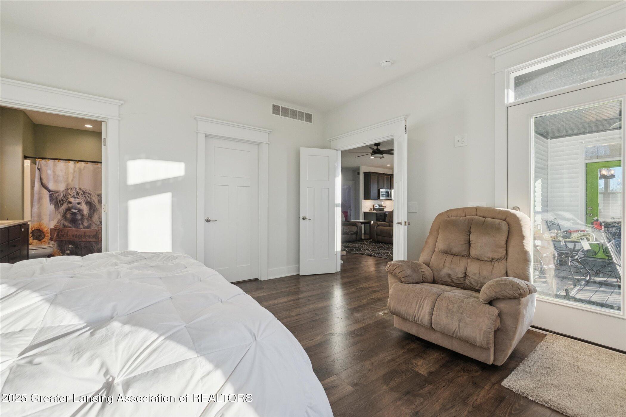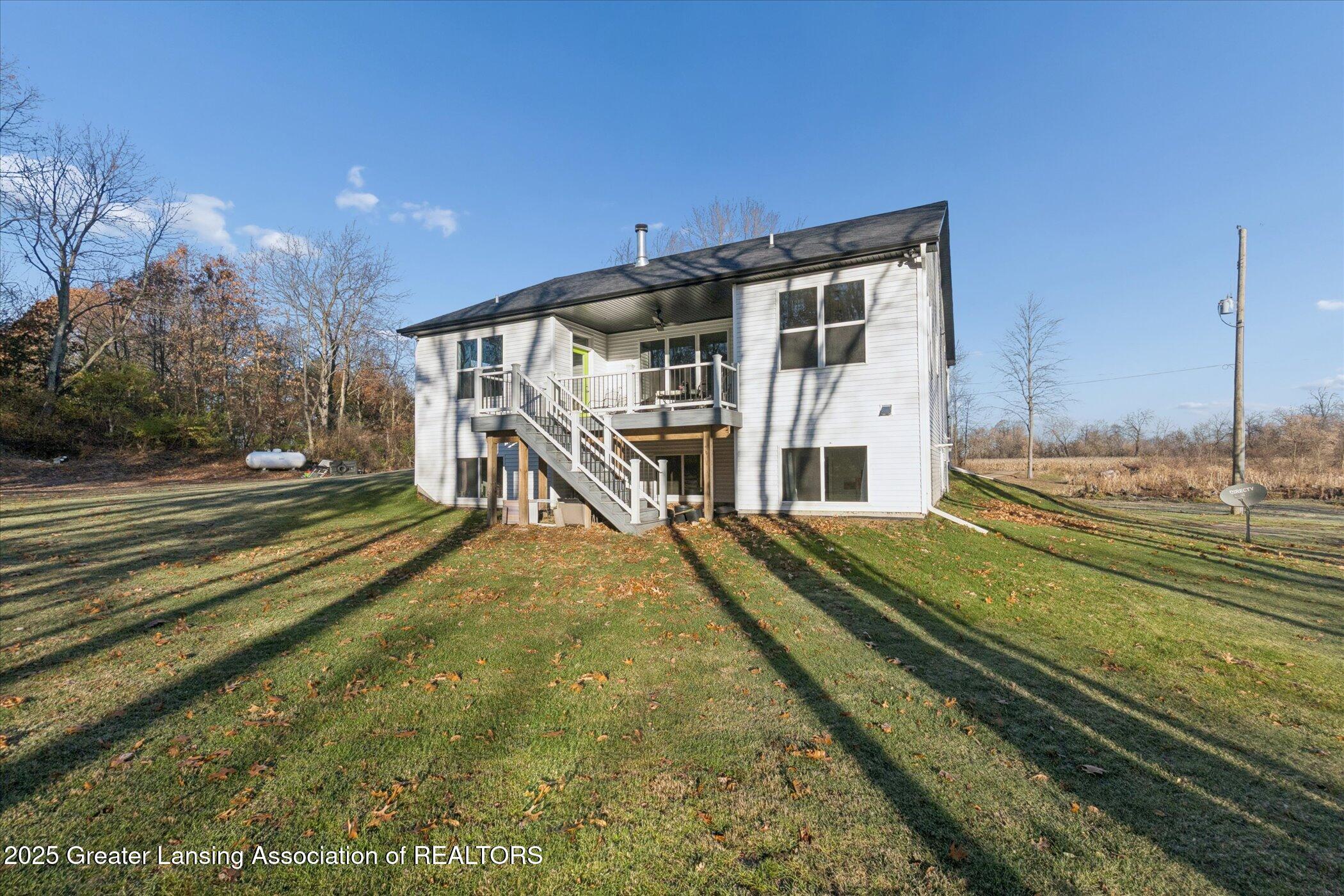 Glorious 5 bed, three bath James Edward quality ranch home perfectly nestled in the woods on 2.5 rolling acres in the heart of Laingsburg. Bright front door welcomes you into a spacious foyer. Morning-inviting great room features engineered flooring, cozy wood burning fireplace with stone hearth and built-in cabinetry. Elegant kitchen features an abundance of rich cabinets, stainless appliances, large pantry and massive quartz island- perfect for guests, breakfast and food prep! Adjacent light filled dining room feels private, yet open to living area and kitchen for gatherings. Stately French doors lead to the peaceful primary suite with expansive luxury bath. Another generous bedroom, a full bath -plus an ideal laundry/mud room/drop zone complete this level. Nicely finished lower level