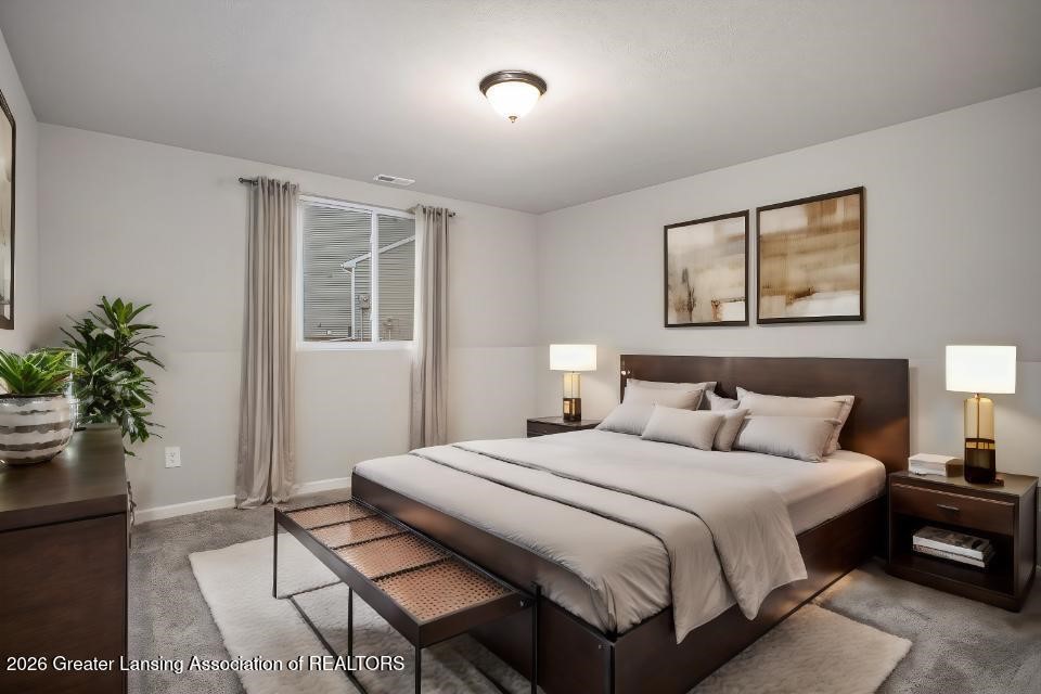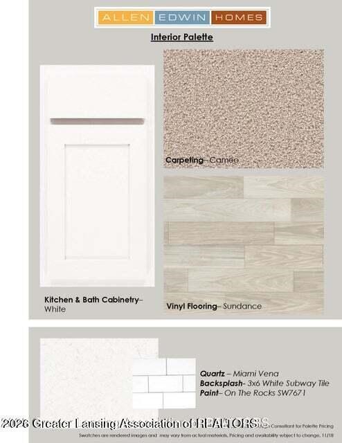 New construction home in Cambria Ridge, located in Potterville school district. RESNET energy smart construction will save $844 annually plus home has 10-year structural warranty! Welcome home to an open concept, raised ranch style home, which includes 2,072 square feet of finished living space on two levels. The main level features a spacious open concepts great room and kitchen, both with vaulted ceilings. The large kitchen includes a 48 inch extended edge island, white cabinets, quartz counters and tile backsplash. The primary bedroom suite is also located on the upper level and includes a private bath that opens to a spacious walk-in closet with exterior windows for natural lighting.