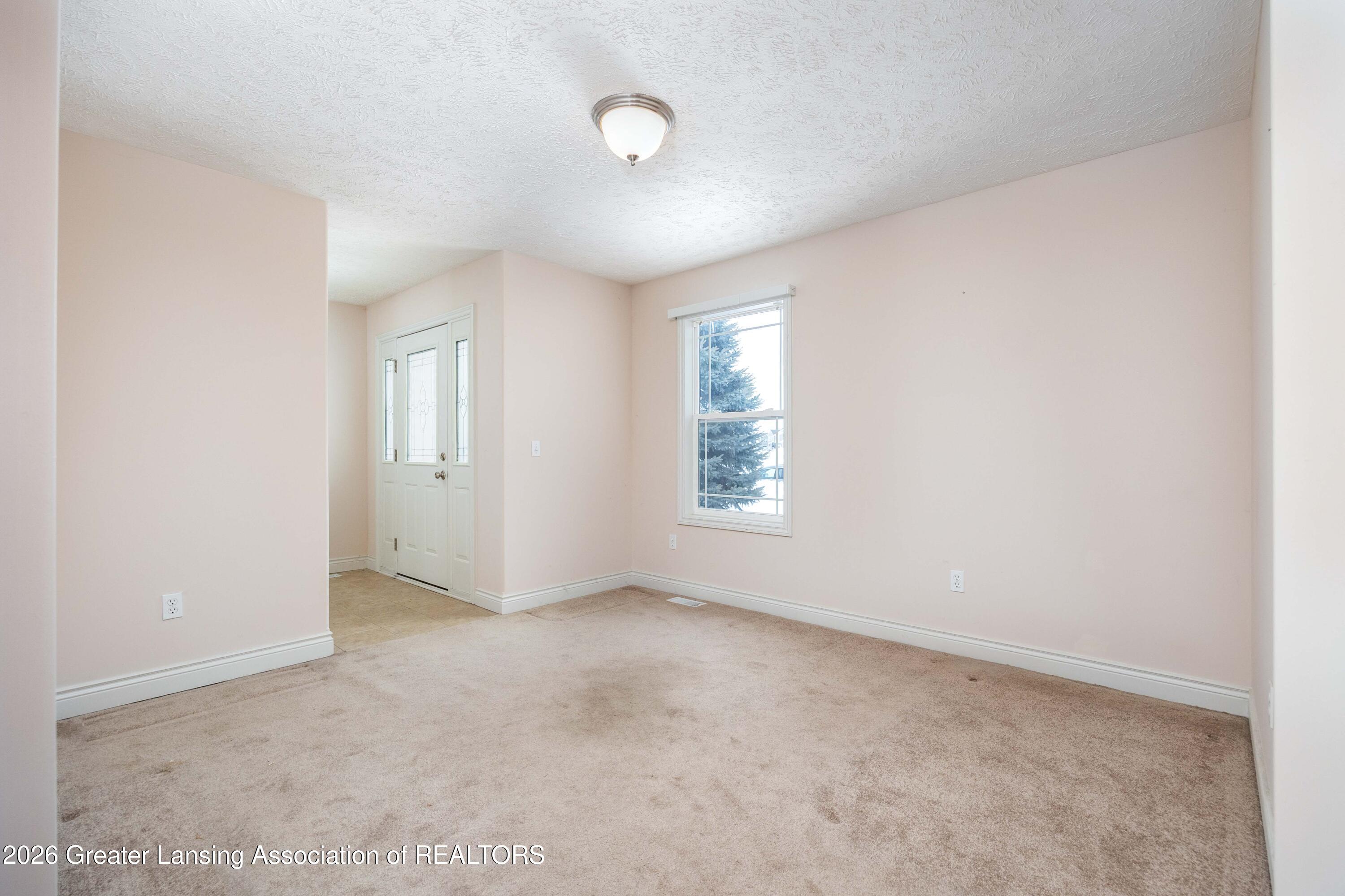 Welcome to this well-built 1,540 sq ft ranch offering comfortable, easy main-floor living in a desirable Grand Ledge location. This 3-bedroom, 2 full bath home features an open-concept layout with a versatile front room that can function beautifully as a formal dining space, home office, or flex space to suit your needs. The spacious living room is anchored by a marble-faced gas fireplace and showcases quality craftsmanship, including rounded wall corners and extra insulation for added comfort and efficiency. The kitchen offers counter-height seating for bar stools, a nice-sized pantry, and flows seamlessly into the bright breakfast nook with access to the composite deck -- ideal for both everyday living and entertaining.