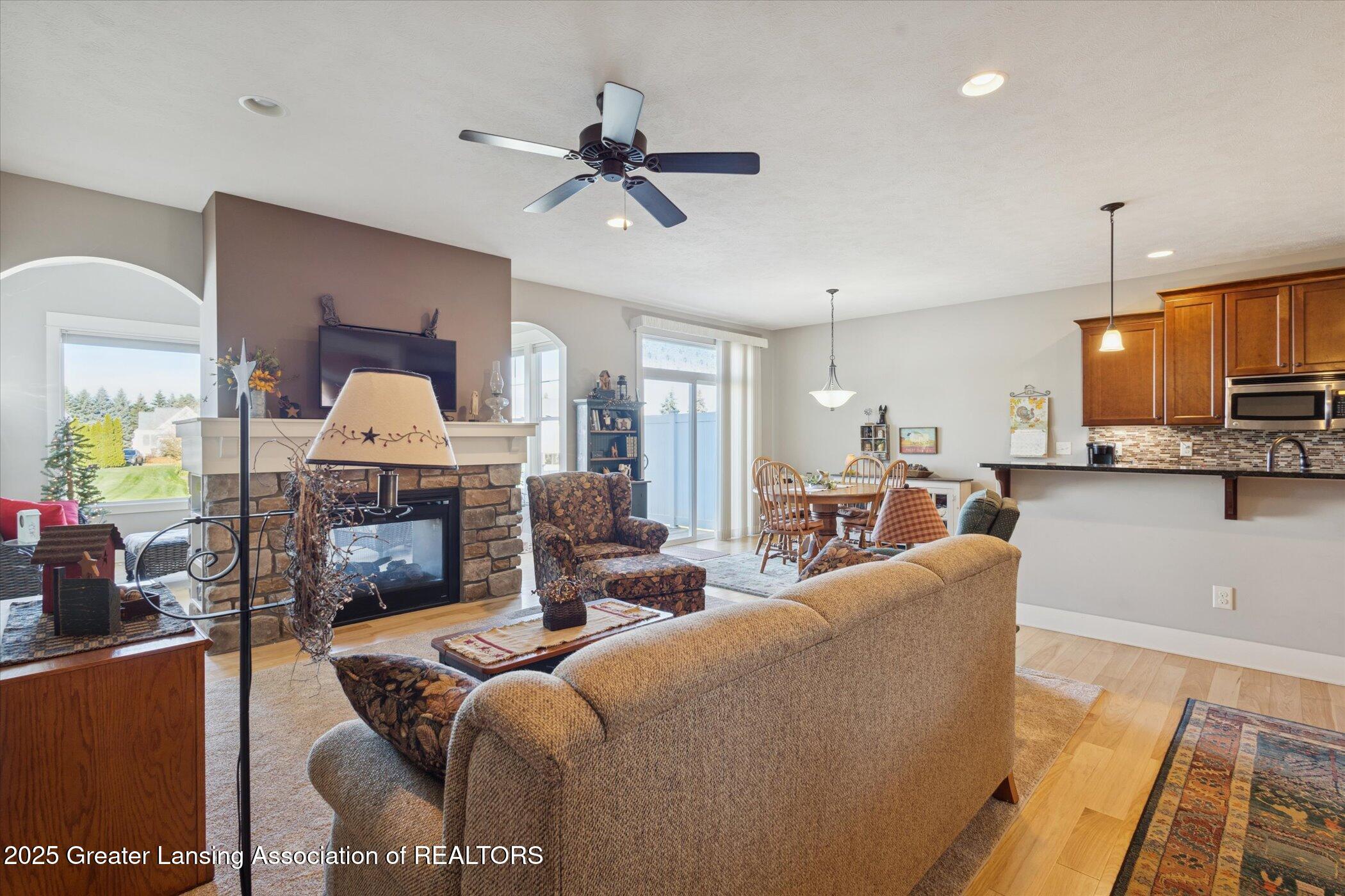 Step into this warm and inviting 2 bedroom 2 1/2 bath condominium in the desirable Pointe West subdivision. Relax in the morning with your coffee overlooking the large pond in the Michigan Room that features a 2 way Gas Fireplace shared with the living room for extra warmth. Open floor plan with Granite countertops in the kitchen. The large open concept floorplan in the basement has tons of natural light coming from the large windows on the walkout side of the home that leads to the yard and pond. Basement has a workshop area for crafts or projects. New front storm door, new garage door motor, new washer, recently. Don't wait on this one! Schedule your private viewing today!