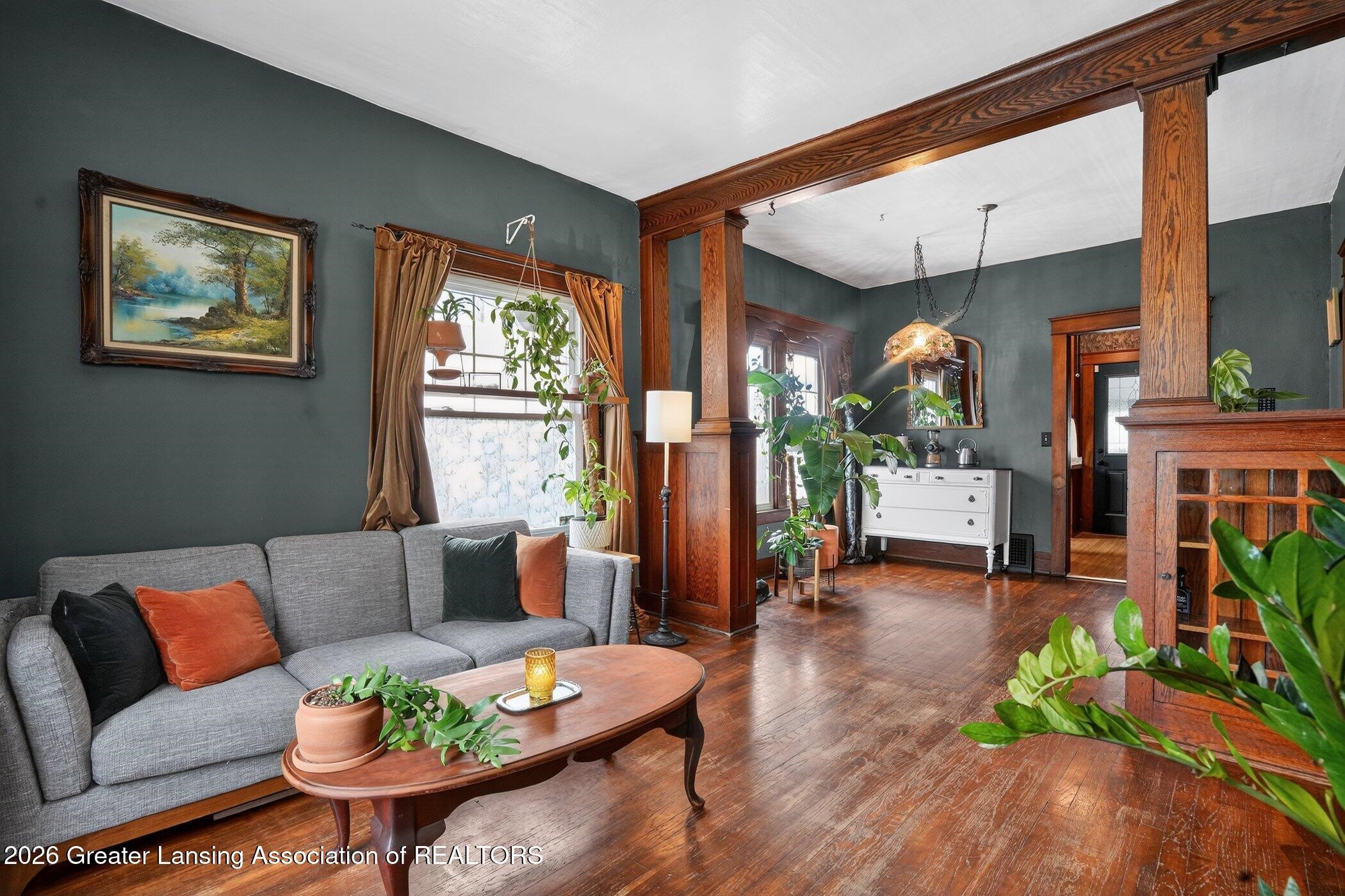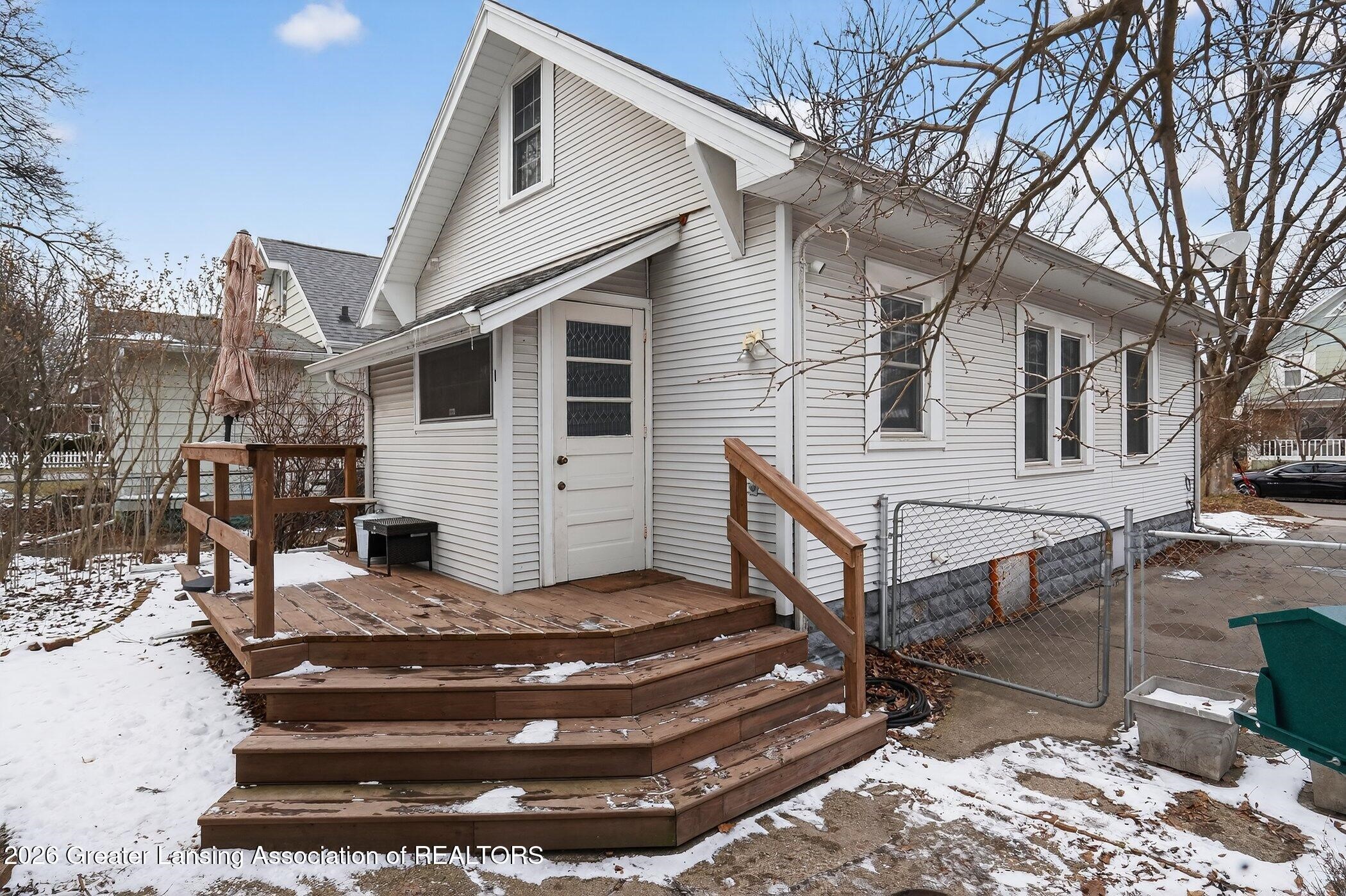 Welcome to 815 Smith Ave in Lansing's Kenwood Subdivision -- where classic character meets smart affordability. Built in 1926, this charming 2-bedroom, 1-bath home is full of warmth and timeless details that today's buyers love. From the moment you step onto the covered front porch, you'll feel the inviting energy of this Craftsman-era gem. Inside, rich hardwood floors and natural light create a cozy yet open flow between the living and dining rooms -- the perfect space for quiet evenings or hosting friends. The kitchen features clean Shaker-style cabinetry and offers easy access to both the basement and a practical mudroom -- ideal for Michigan seasons. That mudroom acts as the perfect drop zone and leads directly out to your private back deck and fully fenced yard.