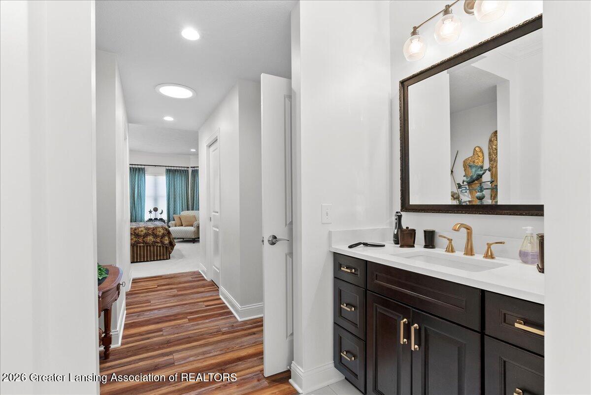 Welcome to 822 Laurelwood in Grand Ledge School district, an immaculate, one-of-a-kind custom home built in 2020 by LT Schafer, showcasing high-end finishes and exceptional craftsmanship throughout. Designed with an open floor plan and soaring 9-foot ceilings, vaulting to 10 feet in the kitchen, dining, and living areas, this home feels both grand and inviting. Solar tubes bring in beautiful natural light, while a gas fireplace anchors the main living space. The chef's kitchen is the heart of the home, complete with a pantry and elevated finishes, flowing seamlessly into the dining and living areas. The main level also features a dedicated office that could easily be converted into a third main-floor bedroom, along with convenient first-floor laundry.