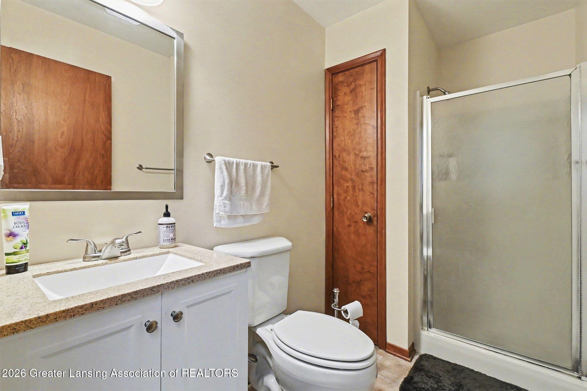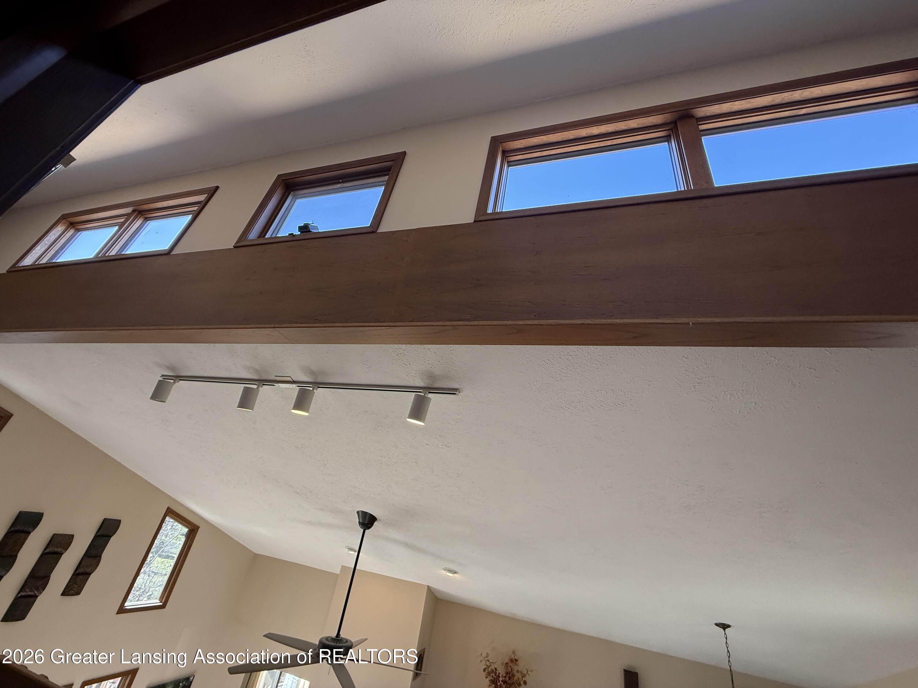Tucked away on a quiet cul-de-sac in Delta Township (Grand Ledge Schools), this contemporary 1.5-story home offers a rare combination of space, privacy, and spectacular natural views. This home is designed to bring the outdoors in, with numerous Anderson casement and transom windows that fill the interior with light while showcasing the wooded setting and the stream below. The dramatic entry opens to a stunning two-story great room featuring a wall of windows, sliding doors to the deck, and a real wood fireplace--perfect for relaxing or gathering while enjoying the serene views. Just off the kitchen and dining area, a sliding door leads to a private deck overlooking the lush natural landscape, creating the ideal space for deer and bird watching, morning coffee or evening sunsets.