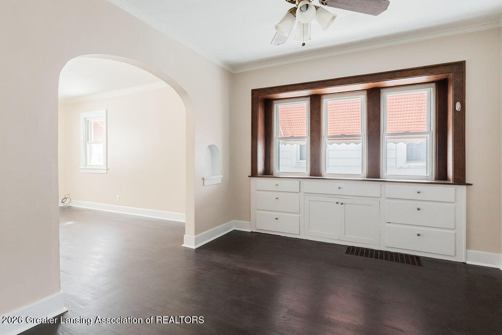 Step inside from the charming covered front porch to beautifully refinished hardwood floors and fresh, modern paint that create a bright and welcoming atmosphere. The inviting living room flows seamlessly into a formal dining area, highlighted by timeless built-in features that add both character and functionality. Just beyond, the kitchen shines with crisp white cabinetry, new appliances, and a cozy nook - perfect for casual breakfasts or morning coffee. The main level offers two comfortable bedrooms and a full bathroom, providing convenient one-level living. Upstairs, discover a spacious third bedroom complete with additional built-ins, offering flexibility for a primary suite, home office, or guest retreat. The lower level includes laundry facilities, made even more convenient with a