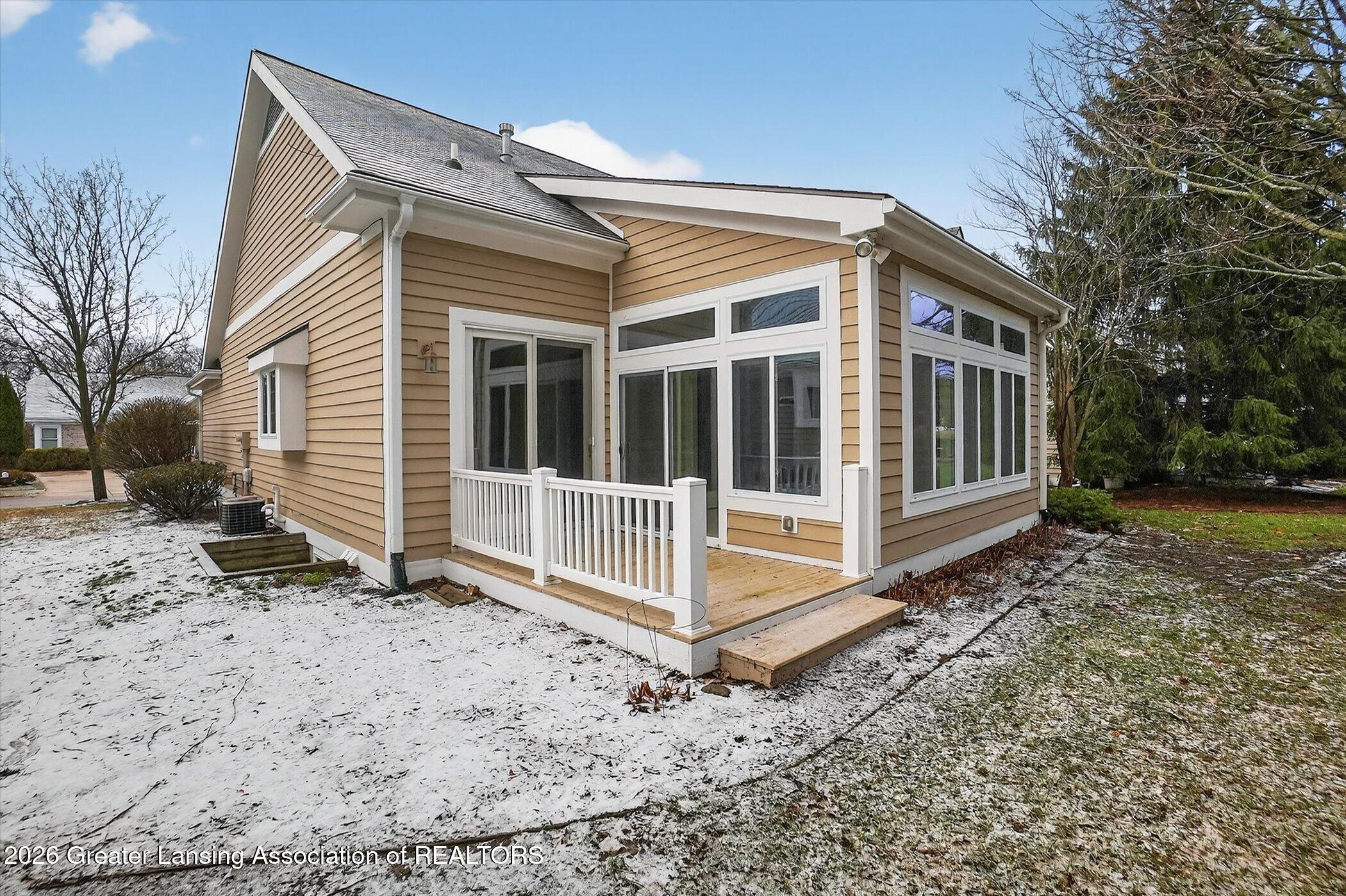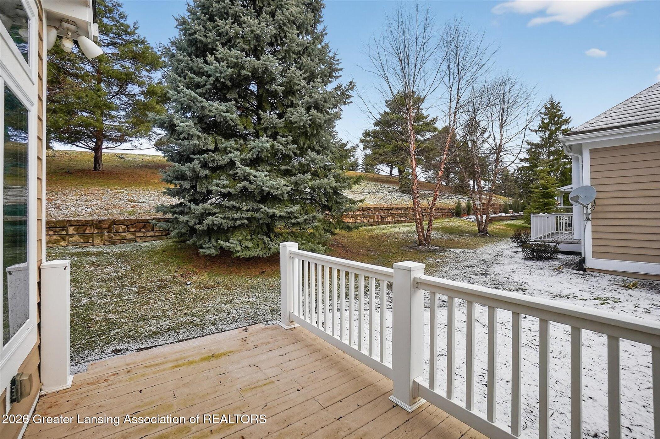 Welcome to easy living in the Greens at Walnut Hills in Meridian Township. This well-maintained condo offers the comfort of main-floor living with space to spread out and make it your own. The open great room features vaulted ceilings, hardwood floors, and a gas fireplace, flowing naturally into a well-positioned kitchen for everyday living and entertaining. The screened porch and deck create a comfortable, quiet space to enjoy time outside. The primary suite is private and spacious, while the second bedroom offers flexibility for guests or a home office. Finished basement adds rec space, wet bar, and storage. Low association fees cover exterior maintenance, lawn care, and snow removal.