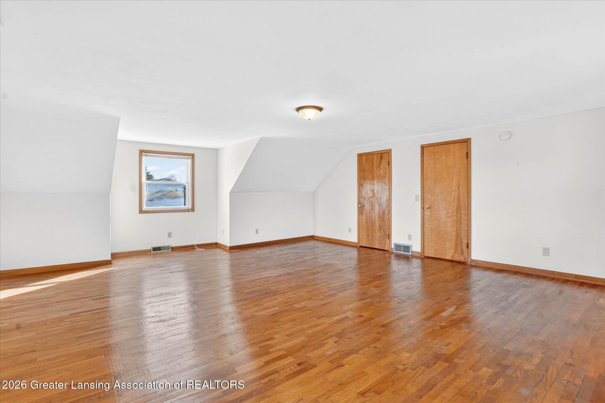 Welcome to 6102 Bradford Lane: a classy 4 bed 2 bath cape cod featuring hardwood floors throughout on a quiet hilltop setting in Grand Ledge schools! First floor has formal dining room, huge living room, and two bedrooms, one with first floor laundry in closet. Kitchen has newer stainless appliances and great views of the nearly half acre yard. Upstairs has two additional bedrooms of epic proportion, as well as a 2nd full bath. Basement has a finished rec room with fireplace and ample storage /workshop space. Other features include storage shed, new hail resistant roof (2020), finished garage, and high efficiency furnace and WH. Dont wait on this one!