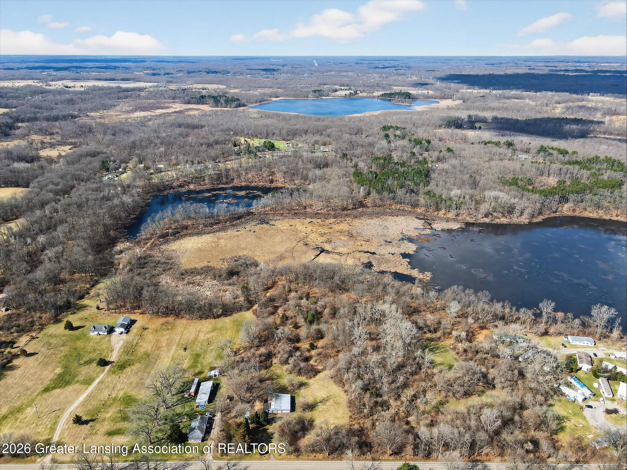 Ranch home situated on 23 acres in Bellevue, offering a great opportunity for those seeking space, privacy, & potential. This home features 3 bedrooms & 2 baths, including a primary suite, with a functional layout placing all bedrooms on one side of the home. Main floor laundry is conveniently located in the mudroom with access from the attached pole barn. The attached garage/pole barn offers an impressive 2,352 sq ft of space, ideal for storage, hobbies, or workspace. The property includes additional access from 14 1/2 Mile Road & private frontage on Wills Lake, a small lake ideal for fishing & canoeing. The roof was replaced in 2020 following tree damage. Interior ceiling repairs are still needed, making this an excellent opportunity for buyers looking to build equity & customize a home