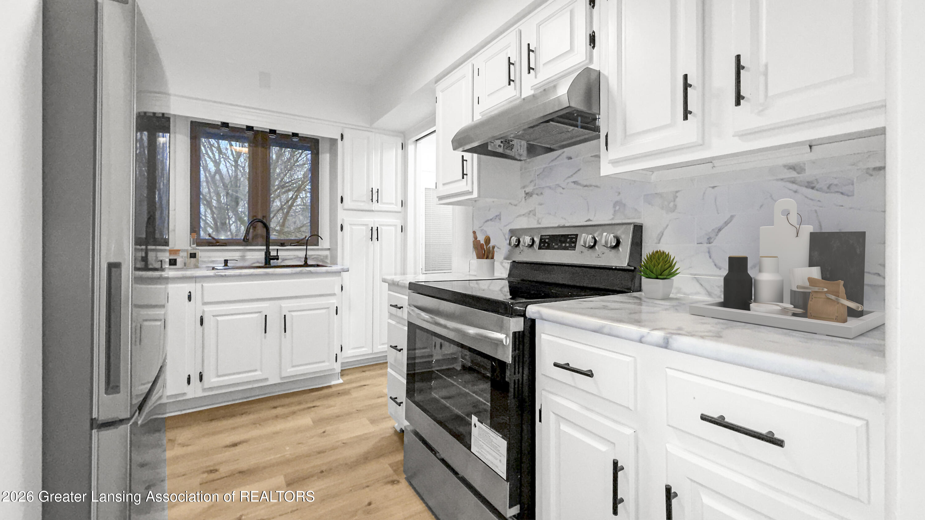 MULTIPLE OFFERS RECEIVED; HIGHEST AND BEST DUE THURSDAY 3/26/2026 BY 8PM! Welcome to this wonderful all brick 3 bedroom, 1.5 bath ranch completely updated with modern fixtures, flooring, lights and plumbing, located in a tranquil neighborhood boasting a 2-car attached garage (EV charger ready) with all new stainless steel kitchen appliances, a newer roof (2018), a new furnace (2026), all fenced-in backyard, covered patio, a partially finished basement with a wet bar, 2 wood-burning fireplaces, and a first-floor laundry.