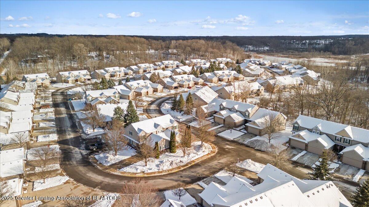 Welcome to 138 Newberry Lane! An incredible end-unit ranch condo which is centrally located between Lansing and Detroit! Almost too many updates to list! Featuring a new furnace (2019), new central air (2019), new water heater (2021), new roof (2021), new windows (2021), new washer and dryer (2024), several new light fixtures (2024) and new stainless-steel refrigerator (2024)! Upon entry, you're greeted by a spacious, open floor plan, great closet space and first floor laundry. The kitchen features no shortage of cabinet or counter space! The living room is highlighted by vaulted ceilings, a gas fireplace and a sliding glass door out to the balcony overlooking a wooded area. The primary bedroom has dual closets, a walk-in shower and newer vanity. The partially finished lower level adds