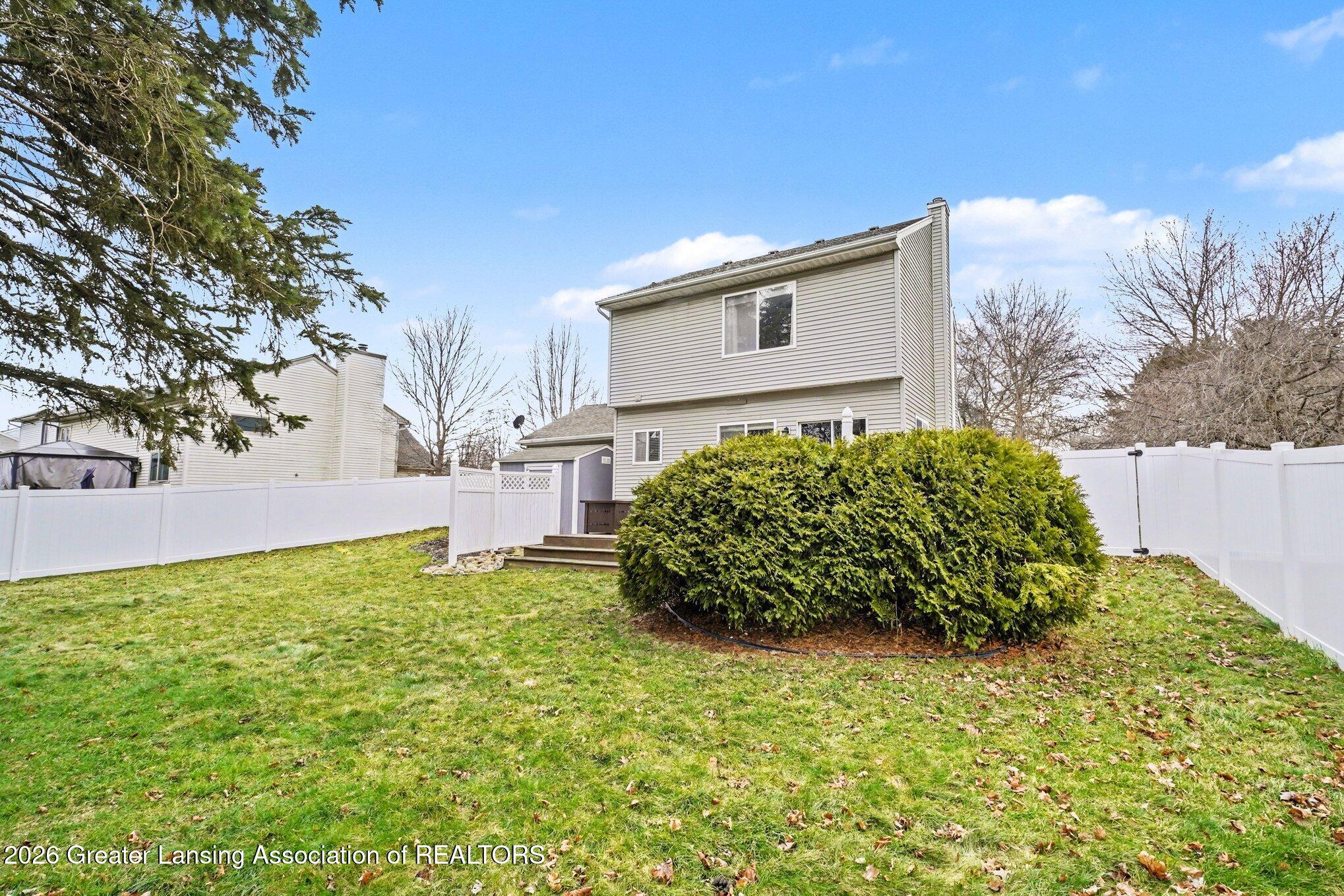 Welcome to this charming two-story home located in the desirable Northway neighborhood in DeWitt! This well-maintained property offers 3 spacious bedrooms, 2.5 bathrooms, and finished basement - providing plenty of room for comfortable living. The functional layout includes a bright and airy eat-in kitchen, convenient mudroom - perfect for keeping things organized year-round, plenty of storage, and a newer (2020) furnace and air conditioning system. Enjoy the fully fenced backyard and mature landscaping, ideal for outdoor entertaining, pets, or simply relaxing. The handy storage shed is ideal for your tools and equipment. This prime location within the highly sought-after DeWitt school district combines a great location with a welcoming neighborhood atmosphere.