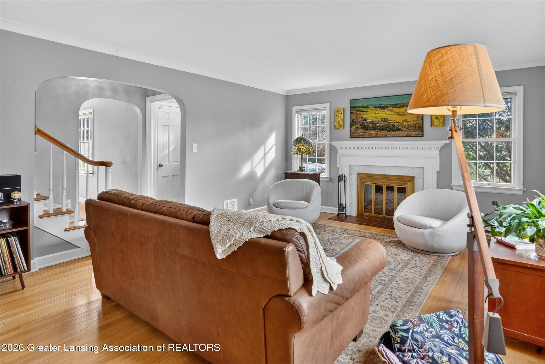 Welcome to this adorable gem located in the highly desired Chesterfield Hills subdivision in East Lansing. 3 beautiful bedrooms fantastic natural light, surprisingly big closet spaces and charming reading nooks, 2 full baths, nicely refinished gleaming hard wood floors throughout the home. A beautifully updated large kitchen with granite counters and tile flooring, and a designated dining area with a beautiful picture window. The flex room on the main level can function as a 3rd bedroom or office. The lower level is partially finished with a bar area for entertaining, and lower level laundry with tons of storage space, and a 2 car garage. All appliances stay. You won't want to miss this cutie. Close to MSU, highways, restaurants and shopping. 2026 taxes are 7500 Suitable housing addendum