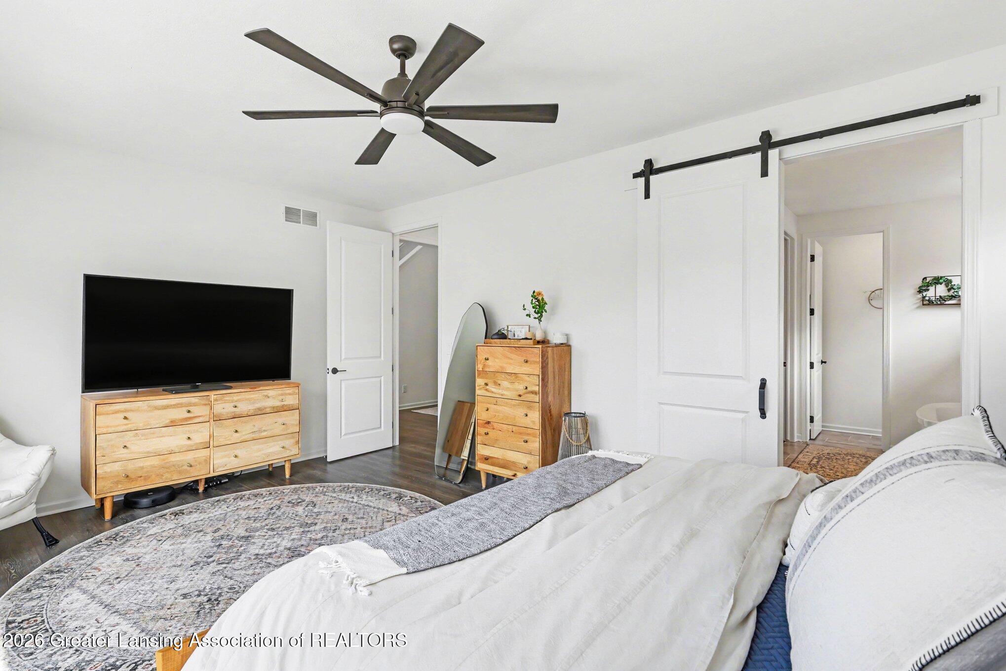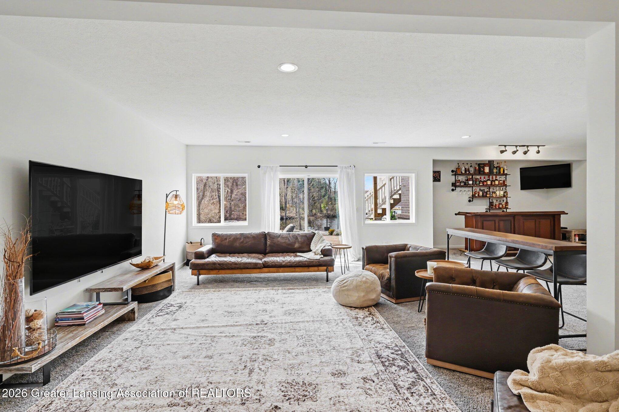 Experience refined waterfront living in this stunning 2022-built luxury home, perfectly situated on the Grand River within a private, gated community in Delta Charter Township. This 5-bedroom, 4.5-bath residence is filled with natural light and thoughtfully designed for both everyday living and elevated entertaining. The open-concept layout features a chef-inspired kitchen complemented by an oversized walk-in pantry and separate butler's pantry, ideal for hosting while maintaining a seamless flow throughout the home. A fully finished walkout basement expands your living space and provides direct access to the outdoors and serene waterfront views.