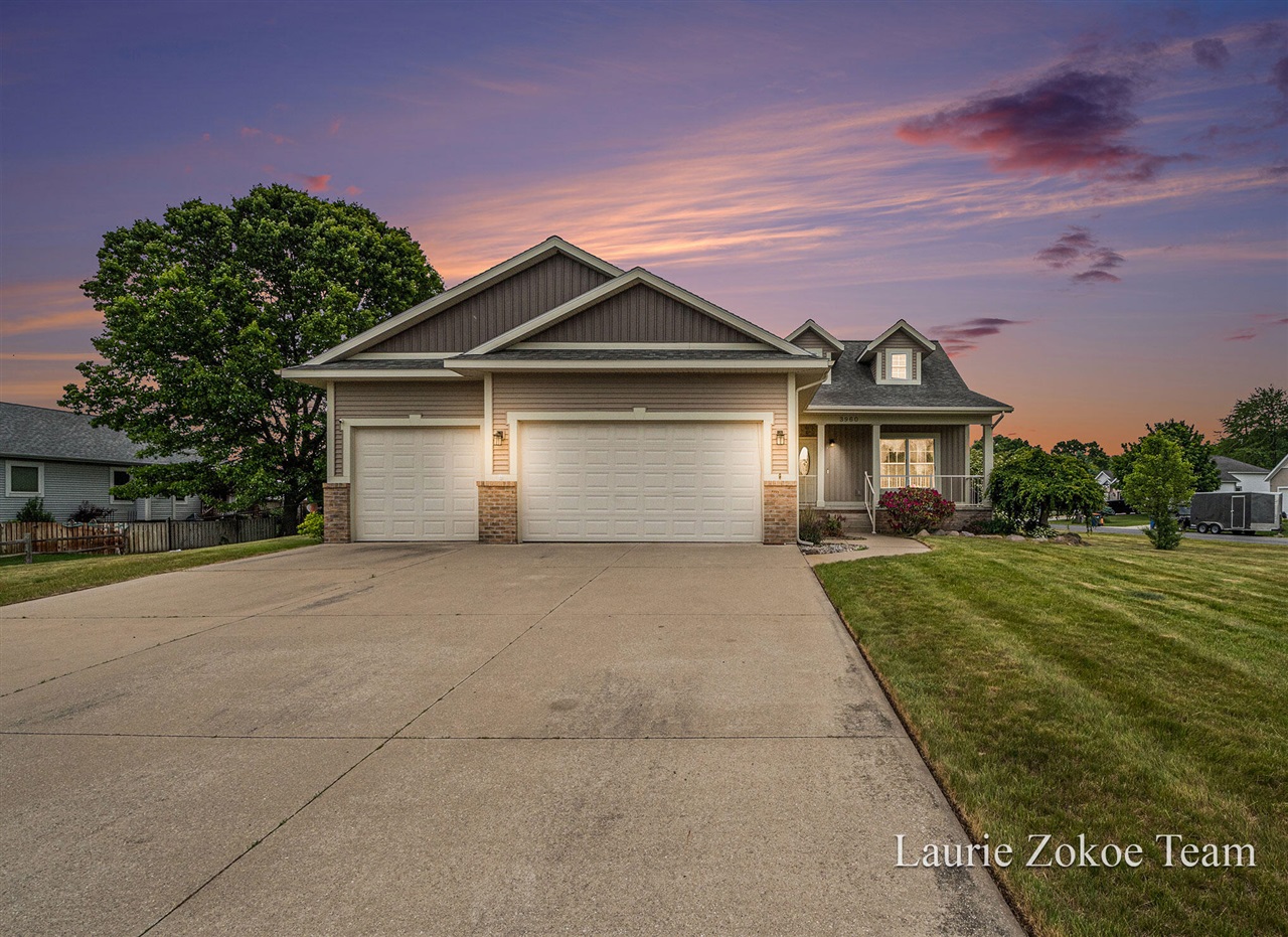 3 DAYS BEFORE CLOSING - BUYERS' FINANCING FELL APART! Discover this beautifully maintained 3-bed, 3-bath Cape Cod home in the desirable Windy Pines neighborhood of Fruitport Township. Built in 2005 and thoughtfully updated, it features a bright, freshly painted interior, a gourmet kitchen with quartz countertops and stainless steel appliances, and a formal dining area. Upstairs, a cozy loft offers space for work or relaxation, plus 2 beds/1bath. The finished walkout basement includes wainscoting and ample living space. Outside, enjoy new vinyl siding (2022), a custom shed, professional landscaping, and a spacious 3-car garage. Located on a 0.43-acre corner lot in the Fruitport School District, this home perfectly blends style, space, and comfort.