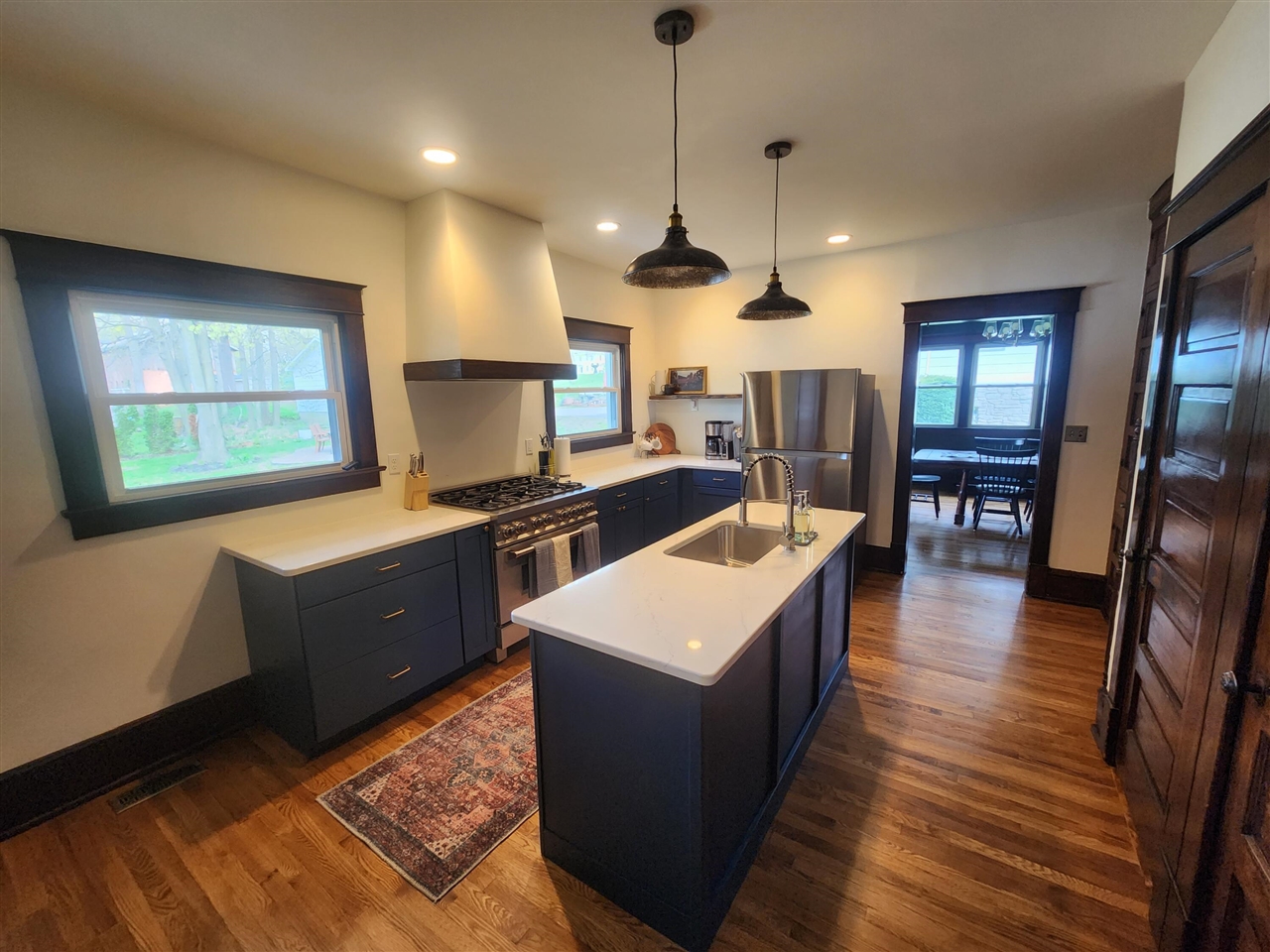 This spacious Jonesville home is the perfect combination of historic charm, modern updates, sturdy early 1900's construction, and preservation of character. Many classic touches like the expansive and welcoming covered front porch, hardwood floors, original restored trim, formal dining room and high ceilings. The grand staircase welcomes you in to the house and the butler's staircase still also leads up from the kitchen. Fully remodeled kitchen & bathrooms, high end appliances including a 36' dual fuel range w/ custom hood. 2 laundry setups (main floor & basement). Dry basement w/ high ceilings and walkout access, partial framing for future finishing (3rd floor attic has potential for finishing also). HVAC & water heater & softener less than 10 yrs old, extensive insulation in walls & under siding. 2 car garage. Only 4 miles from Hillsdale College/Academy, and walking distance to the park and Sauk Theatre. This is a beauty!