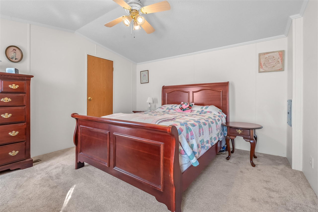 Welcome to this one of a kind...tucked back approximately 600 feet off the road, this 2-bedroom, 2-bath manufactured home on 23 acres offers privacy, space, and a great setup for anyone who enjoys the outdoors. Built with 6-inch walls and heavily insulated for efficiency, the home also features a spacious 20x24 addition completed in 2017. Inside you'll find updated kitchen cabinets and countertops (2017), newer appliances, majority updated windows, newer flooring, and a tankless water heater. Heating options include a wood burner or propane.Enjoy the peaceful setting from the covered 8x24 back porch or relax on the covered front porch overlooking the property.The outbuildings make this property stand out. A 30x60 five-bay garage provides ample storage, along with a 16x16 shed. There is also a 40x45 pole barn with concrete floors that is insulated and heated, complete with a sewing/work room.