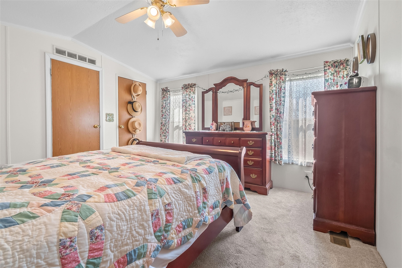 Welcome to this one of a kind...tucked back approximately 600 feet off the road, this 2-bedroom, 2-bath manufactured home on 11.6 acres offers privacy, space, and a great setup for anyone who enjoys the outdoors. Built with 6-inch walls and heavily insulated for efficiency, the home also features a spacious 20x24 addition completed in 2017. Inside you'll find updated kitchen cabinets and countertops (2017), newer appliances, majority updated windows, newer flooring, and a tankless water heater. Heating options include a wood burner or propane. Enjoy the peaceful setting from the covered 8x24 back porch or relax on the covered front porch overlooking the property. The outbuildings make this property stand out. A 30x60 five-bay garage provides ample storage, along with a 16x16 shed. There is also a 40x45 pole barn with concrete floors that is insulated and heated, complete with a sewing/work room.