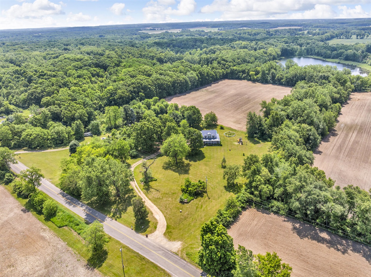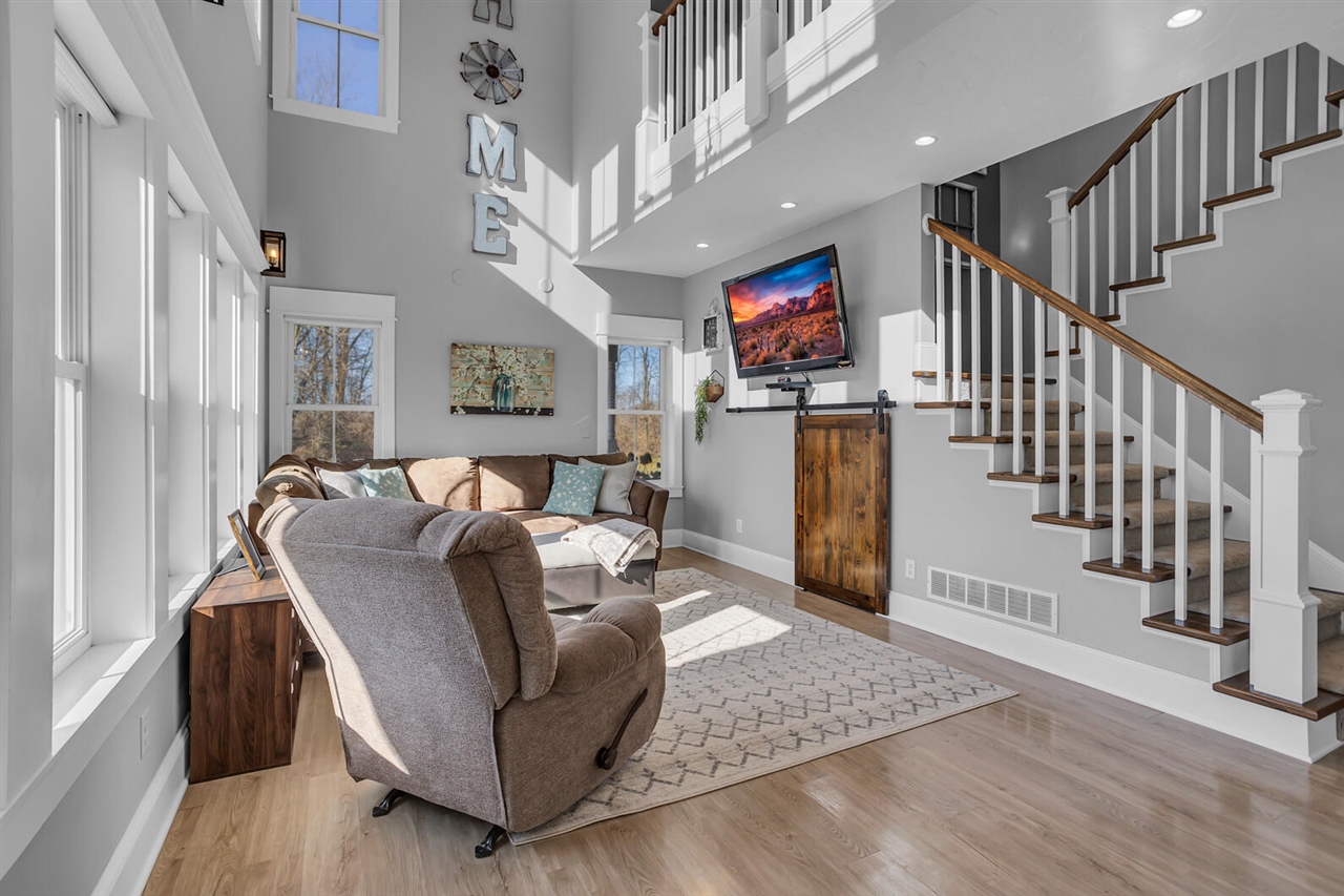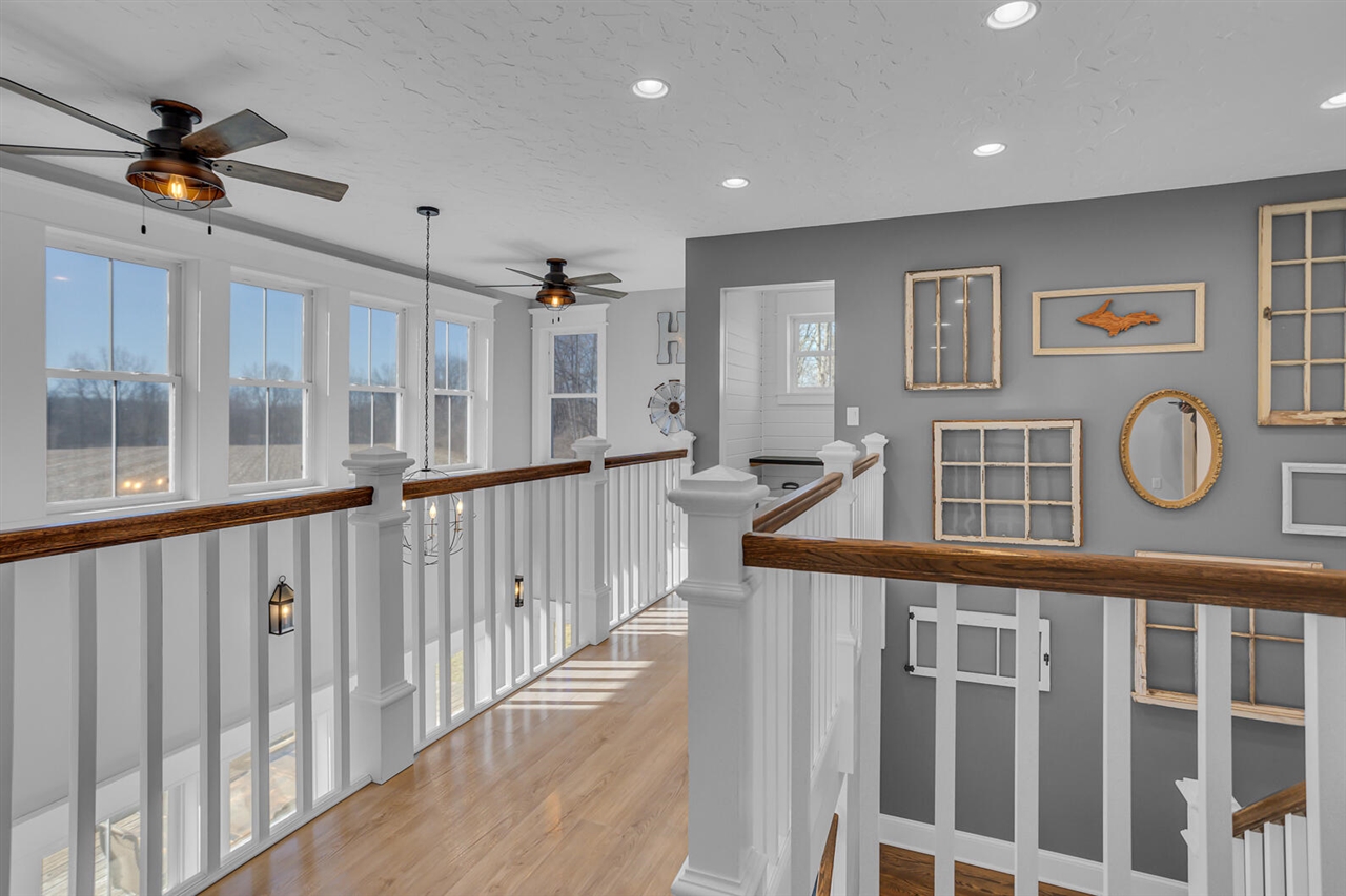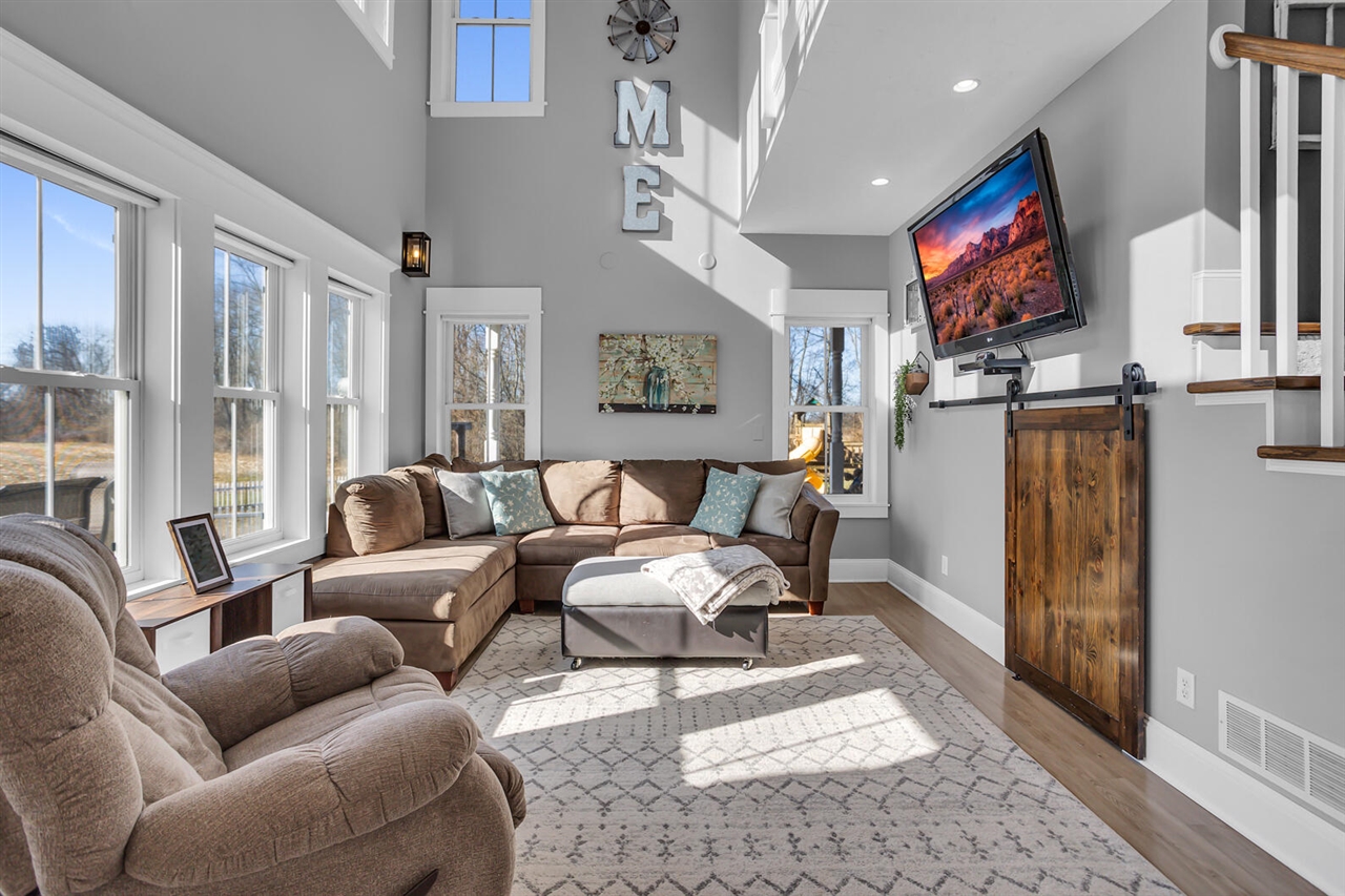 CUSTOM COUNTRY ESTATE ON 1.87 ACRES WITH WRAP AROUND PORCH & GRAND ENTRANCE. Step inside this timeless 3BDRM/2BA home! Beautiful kitchen featuring elegant white cabinets, butcher block counters w/breakfast bar, apron farmhouse sink & true walk-in pantry! SS appliances included. Dining alcove w/vaulted ceiling & built-in bench seating surround the sliding glass door leading to the deck. The second level captures stunning elevated country landscape views across a catwalk landing w/overlook to the living rmcreating an open & airy feel. Finished lower level w/home gym & rec space, great storage & private exterior entry. Bonus space of approx 840+ sq ft has been studded-in (electric, plumbing & ductwork already in place) w/the vision of a primary ensuite. Garden space.