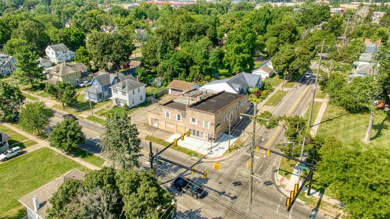 Bank Owned and Ready for Remodeling. Located on a high-visibility corner, this multi-use property is just waiting to be brought back to its former glory! This adaptable commercial property is perfectly suited for a range of business and residential possibilities. Floor plan will accommodate multiple uses. It offers exceptional flexibility for commercial ventures, including retail, office, or service businesses. The main level's versatile layout features three exterior entrances and an attached garage with an overhead door. Upstairs, a spacious residential unit features two bedrooms, a full bath, and a laundry room, as well as a bright sunroom that opens to a private rooftop porch, providing a comfortable outdoor retreat. So much potential, call today for your private tour!
