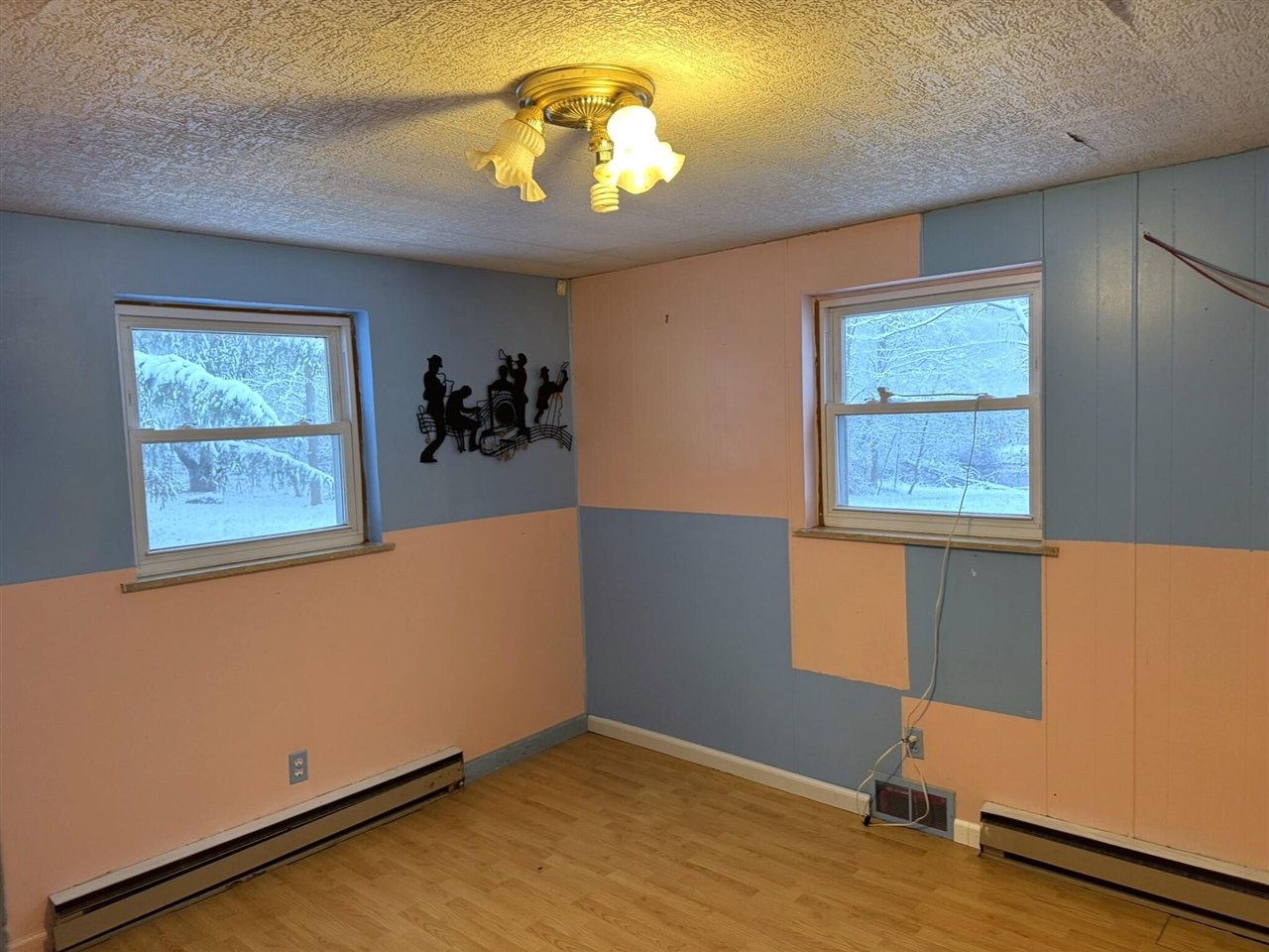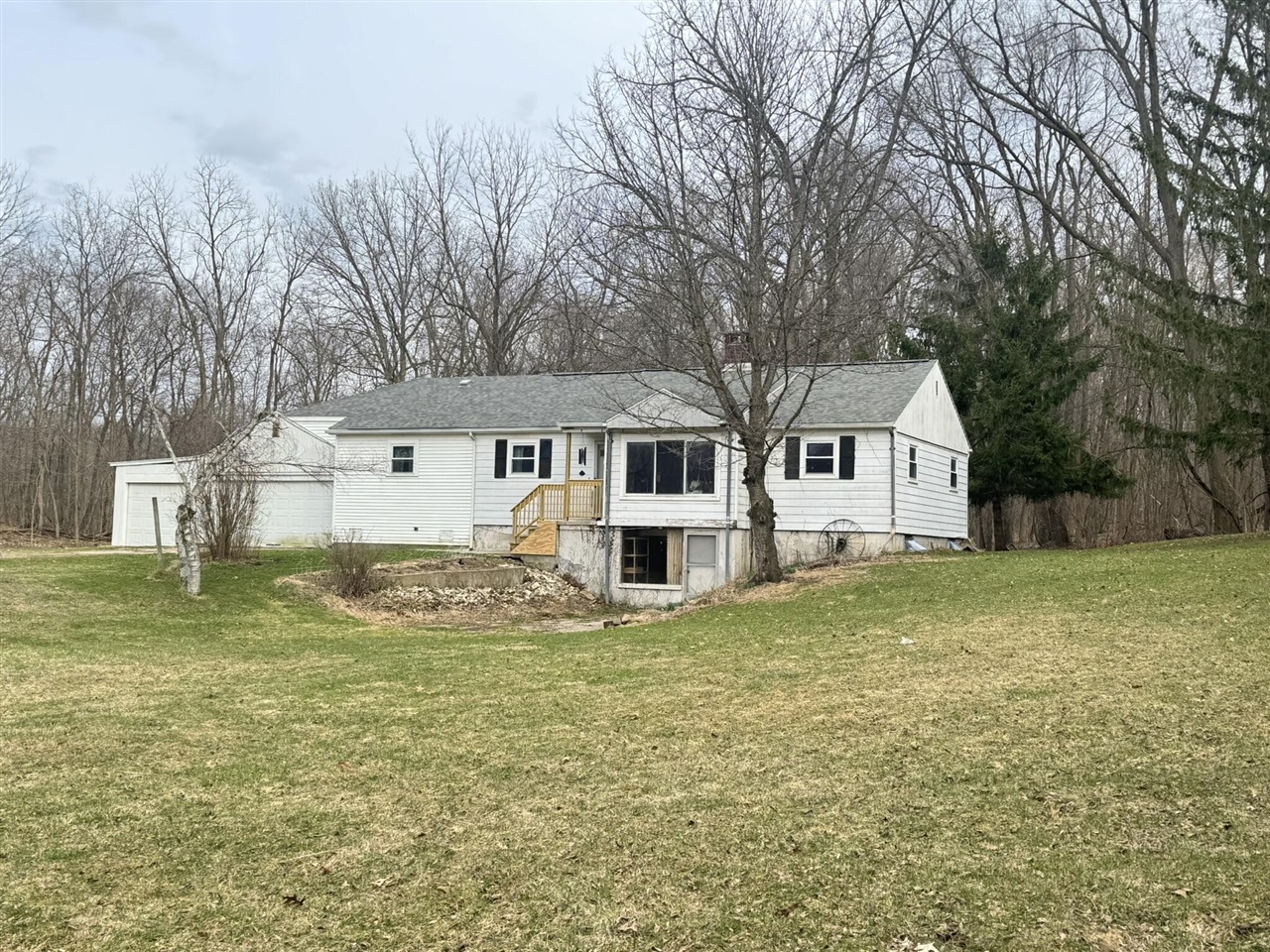 Escape to the serene beauty of this quiet country ranch home, perfectly situated on almost 6 acres of open space and secluded woods. This property offers the ultimate in privacy and peace, complete with two beautiful ponds (stocked with bass!) and stunning, picturesque views, especially during the vibrant spring and fall seasons, where you can watch the abundant wildlife. The home itself features a spacious and welcoming layout. The large living room is bathed in natural light thanks to a big picture window offering lovely views of the pond and surrounding trees. The eat-in kitchen flows into a versatile space currently used as a piano nook, which could easily serve as a formal dining area. The main level boasts three bedrooms, including the primary bedroom, all featuring large closets for ample storage, and two full bathrooms. Notable recent updates ensure peace of mind, including a new furnace and water heater in 2023, new kitchen windows in 2023, and a roof replacement in 2020.