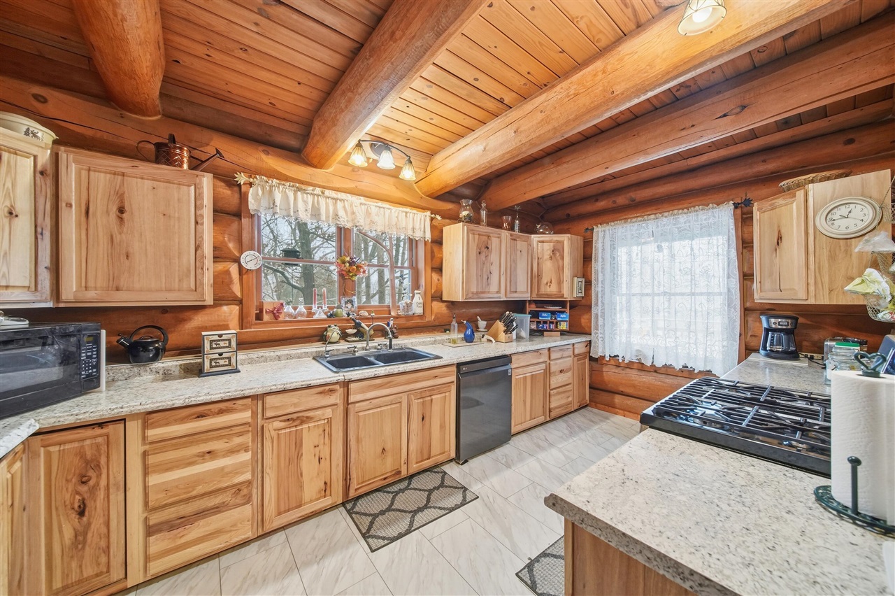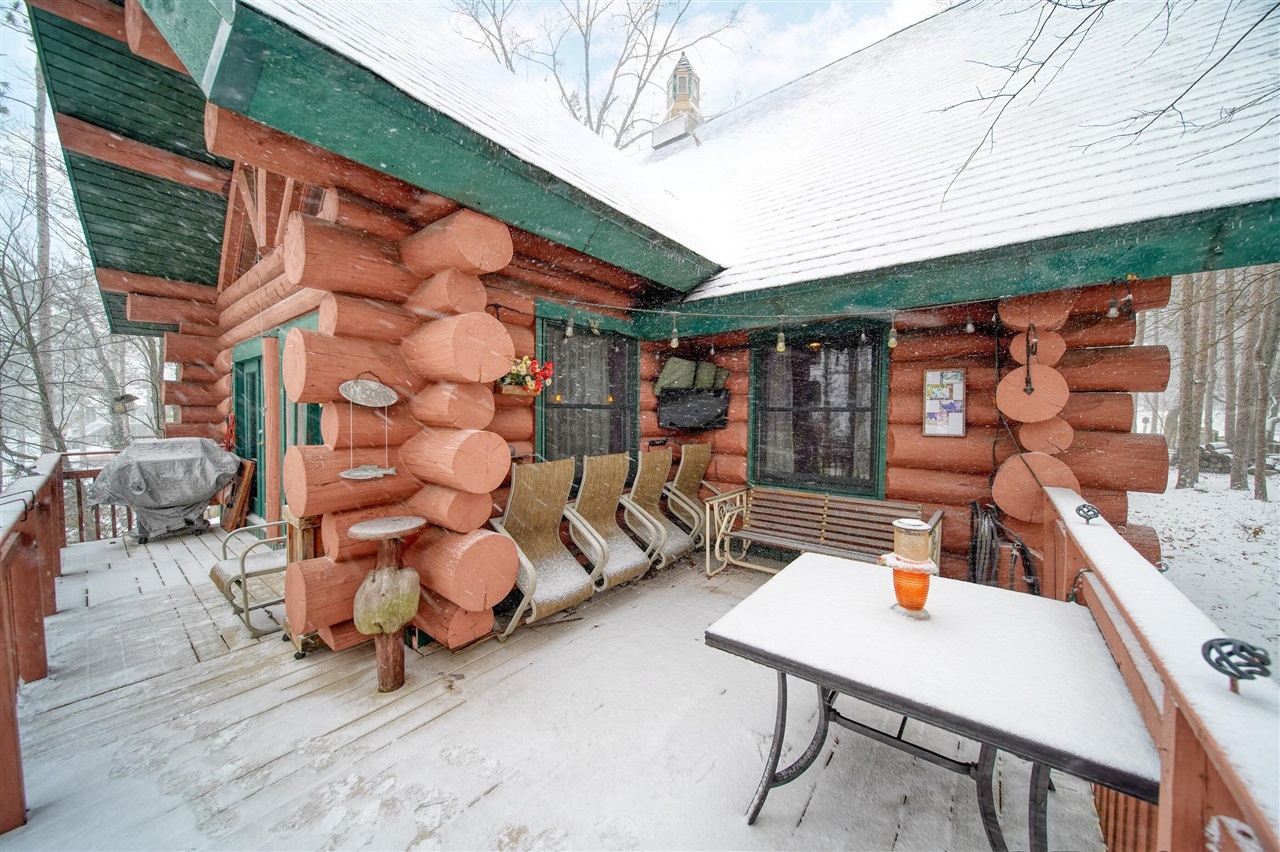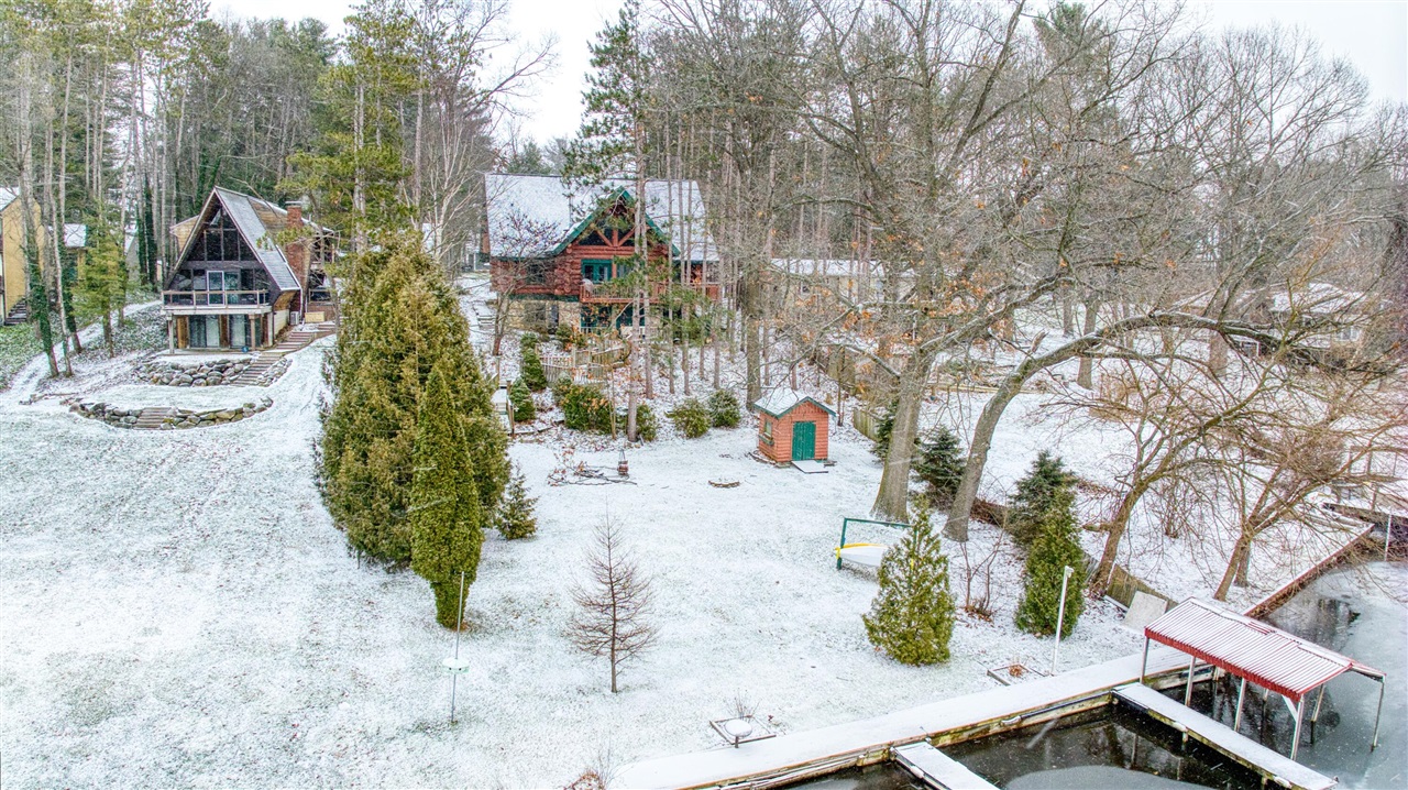 You'll love this stunning custom built log home on a gorgeous chain of lakes with that up-north feel without the long drive! This home features beautiful logs brought in from Drummond Island, an open floor plan, cathedral ceilings and endless character & charm! The walkout lower level is finished, includes kitchenette, spirits room, and plenty of entertaining space. A large detached 2+ car garage has a finished loft (heat and air) and room for plenty of storage. Though your neighborhood feels like a vacation community, your new home is just about 15 minutes from Jackson, Mi. This lovely lakefront home with boasts a custom fire pit and 3 docks giving you everything you need to make lifetime memories.****Please watch Video*** Next to Photos***