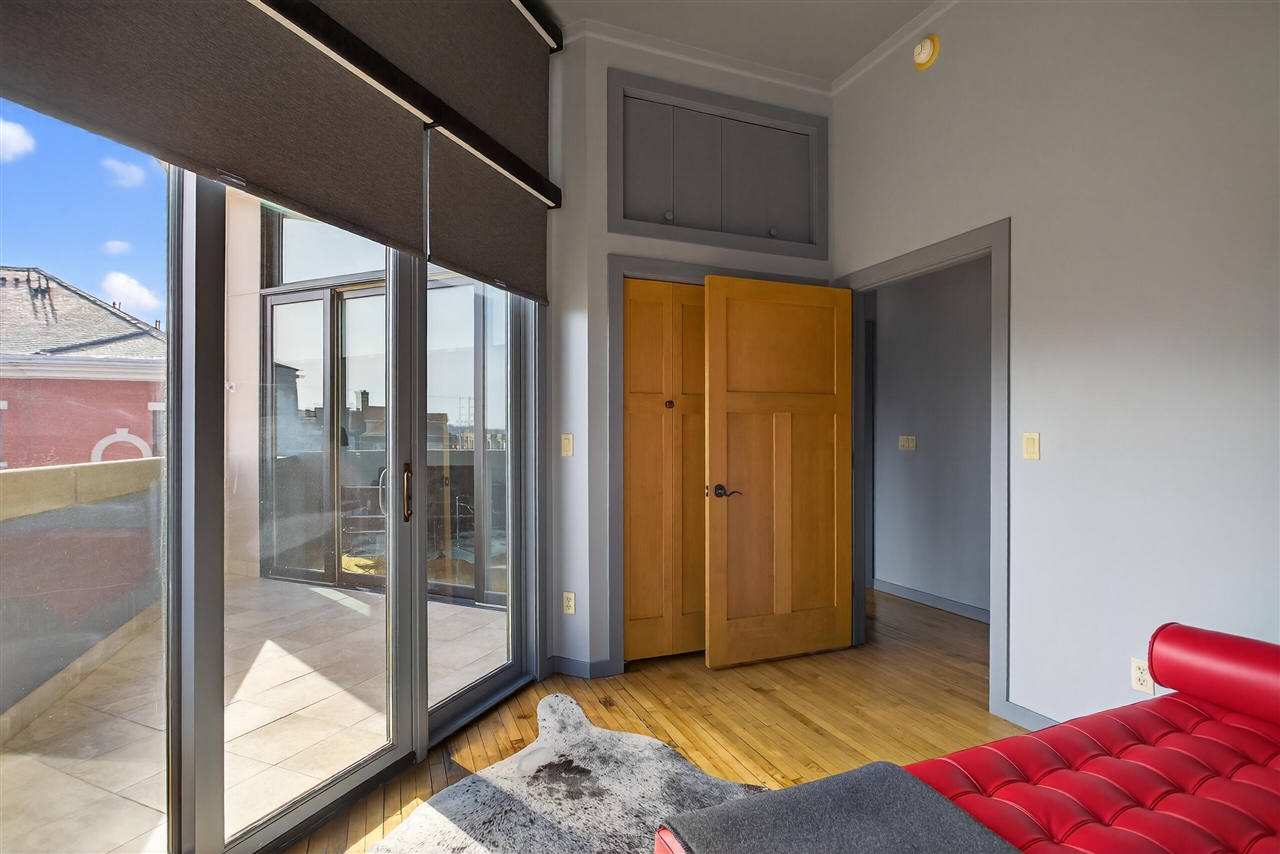 An exceptional opportunity to own a residence rooted in architectural significance, this Albert Kahn-designed condominium is set within a historic former corset factory, where historic industrial design meets refined modern living. Perched on the third floor, this sophisticated condo offers a private balcony with striking city views, framed by soaring 12-foot ceilings and rich original hardwood floors that tell a story of timeless craftsmanship. The 2-bedroom, 2-bath layout has been carefully updated to respect the building's architectural integrity while introducing contemporary function. The entire residence has been freshly painted and upgraded with new appliances, new plumbing fixtures, and the kitchen featuring maple cabinetry--clean-lined, understated, and timeless. The guest bath has been updated with a modern sensibility, while custom built-ins in the primary closets reflect a commitment to purposeful design and efficient use of space. Condo comes fully furnished.