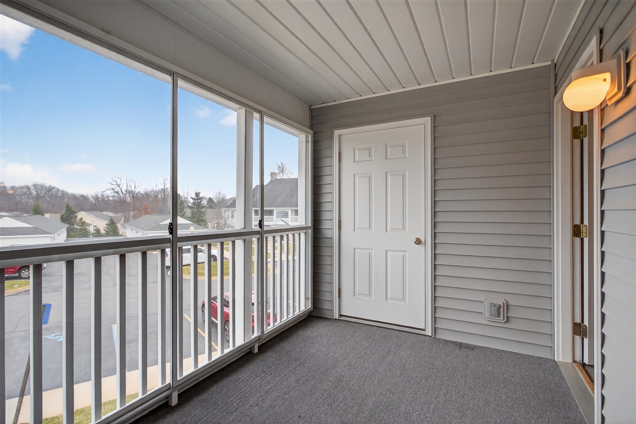 Move-in ready 2-bedroom, 2-bath upper-level condo in desirable Summit Glen in Summit Township. Features include neutral decor and a well-appointed kitchen with cherry cabinetry, pullout drawers, snack bar, and appliance package. The living room showcases vaulted ceilings and opens to an enclosed screened porch with plexiglass panels to help keep out rain while enjoying the outdoor space. Separate laundry room and Kinetico water softener. Spacious primary suite includes a private bath and two closets. Garage includes a shelving unit for storage. Smoke-free building. Located minutes to Grocery, Restaurants, Hickory Hills & Arbor Hills Golf Courses.