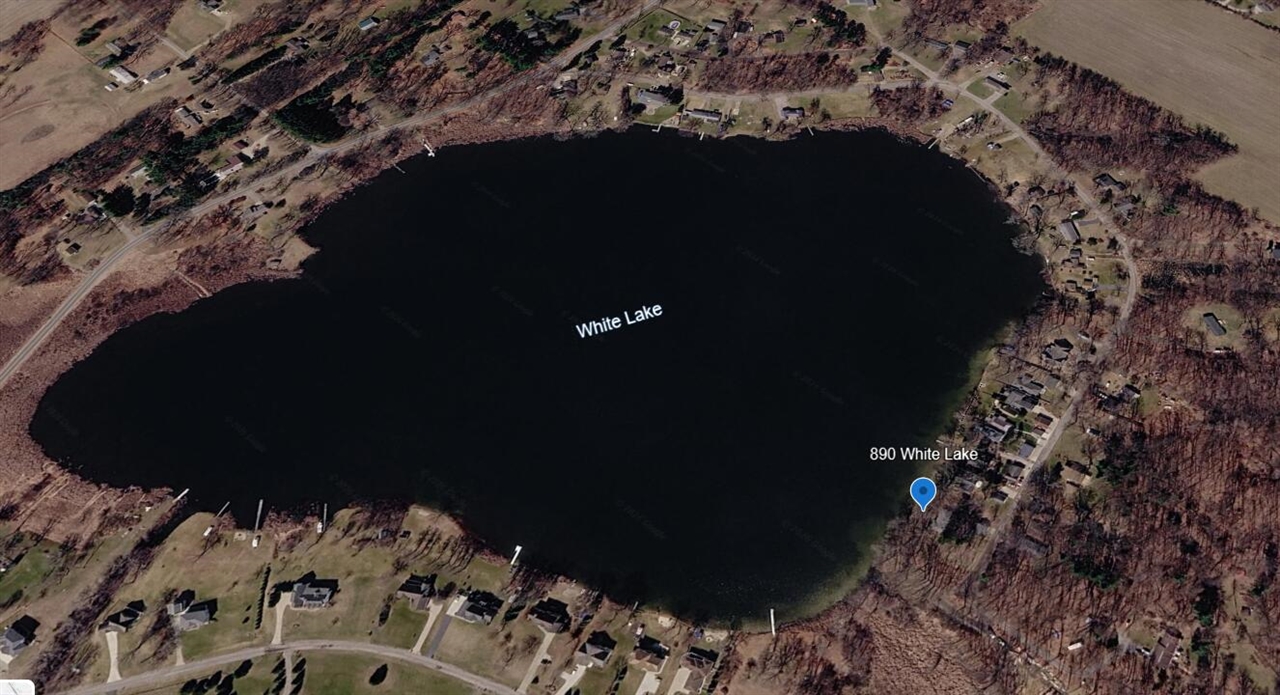 Incredible lakefront RANCH OASIS on 1.28 acres-a total of 8 lots. Discover the perfect blend of vintage charm and modern comfort in this meticulously maintained, one family owned, brick home. Nestled on 3 lakefront lots; 150' of private frontage with seawall on all-sports White Lake offering exceptional outdoor space & breathtaking views. Inside, you'll find 3 spacious bedrooms; 1.5 baths (full bath features gleaming tiled shower, separate tub & ample vanity space). The living room showcases the stunning lake views & fireplace for year-round enjoyment. The spotless kitchen has been freshly painted offering vintage vibes & great work/prep space; it opens to THE perfect gathering spot-an absolutely charming ''lake-life'' memory making family room! A generous laundry/mud-room adjacent to the 1/2 bath & partial basement adds everyday convenience. Detached 2 car garage with workshop & 220; PLUS additional 5 lots directly across road with the 2nd 24X48 heated-a/c garage with a spacious